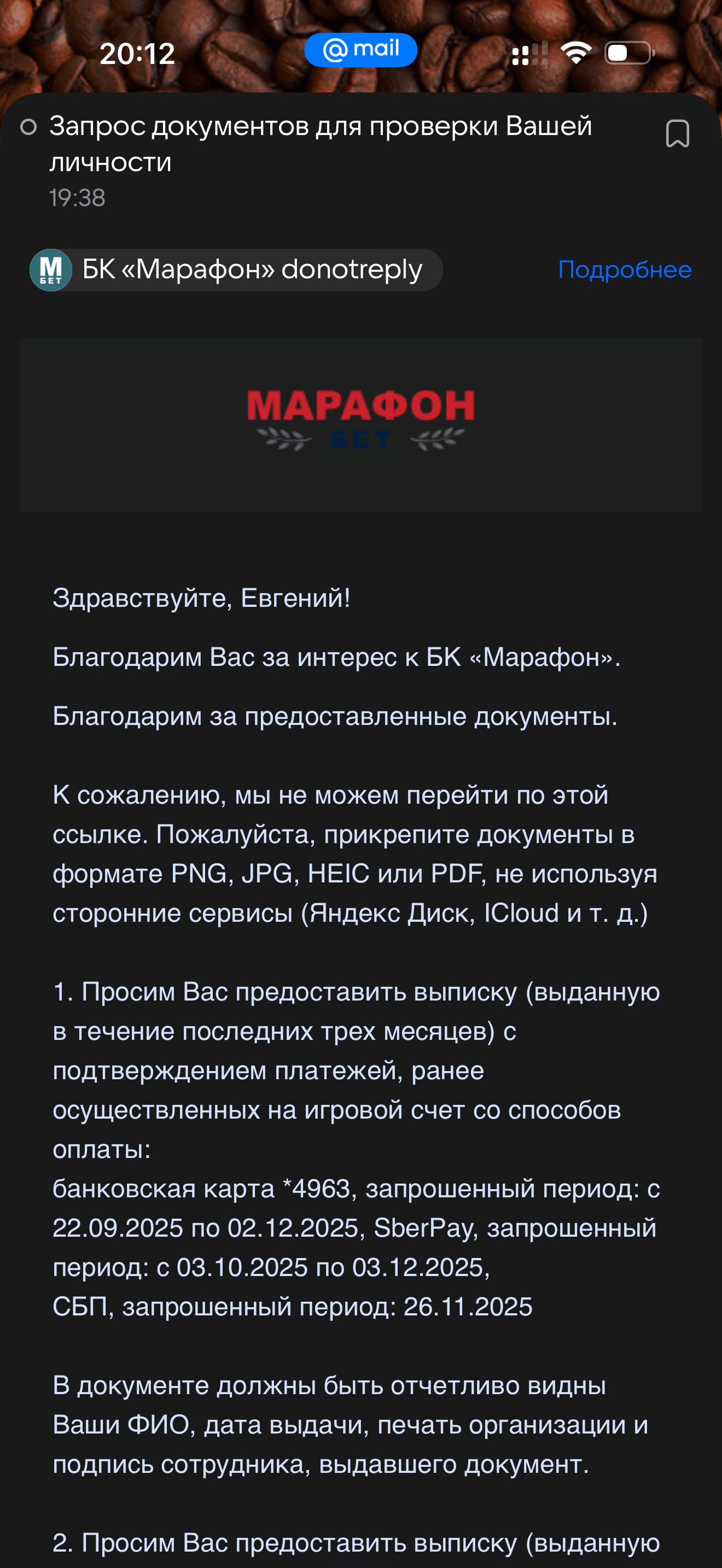 Думал сегодня, что напишу, что вот видеовериф прошел, все хорошо, ура. Но произошло пробитие дна. В прошлом письме мне написали, чтобы я выбрал 1 из 2 слотов для видеоверифа: сегодня с 2 до 5 и послезавтра. Я выбрал сегодня и все тишина. Сегодня с 2 до 5 постоянно смотрел почту, так ничего и не написали. В поддержке ничего не знают, а по почте не отвечают, я вот в 2 часа их спросил про то, скинут ли мне ссылку для звонка. Судя по тому, что уже больше 5, значит не сегодня