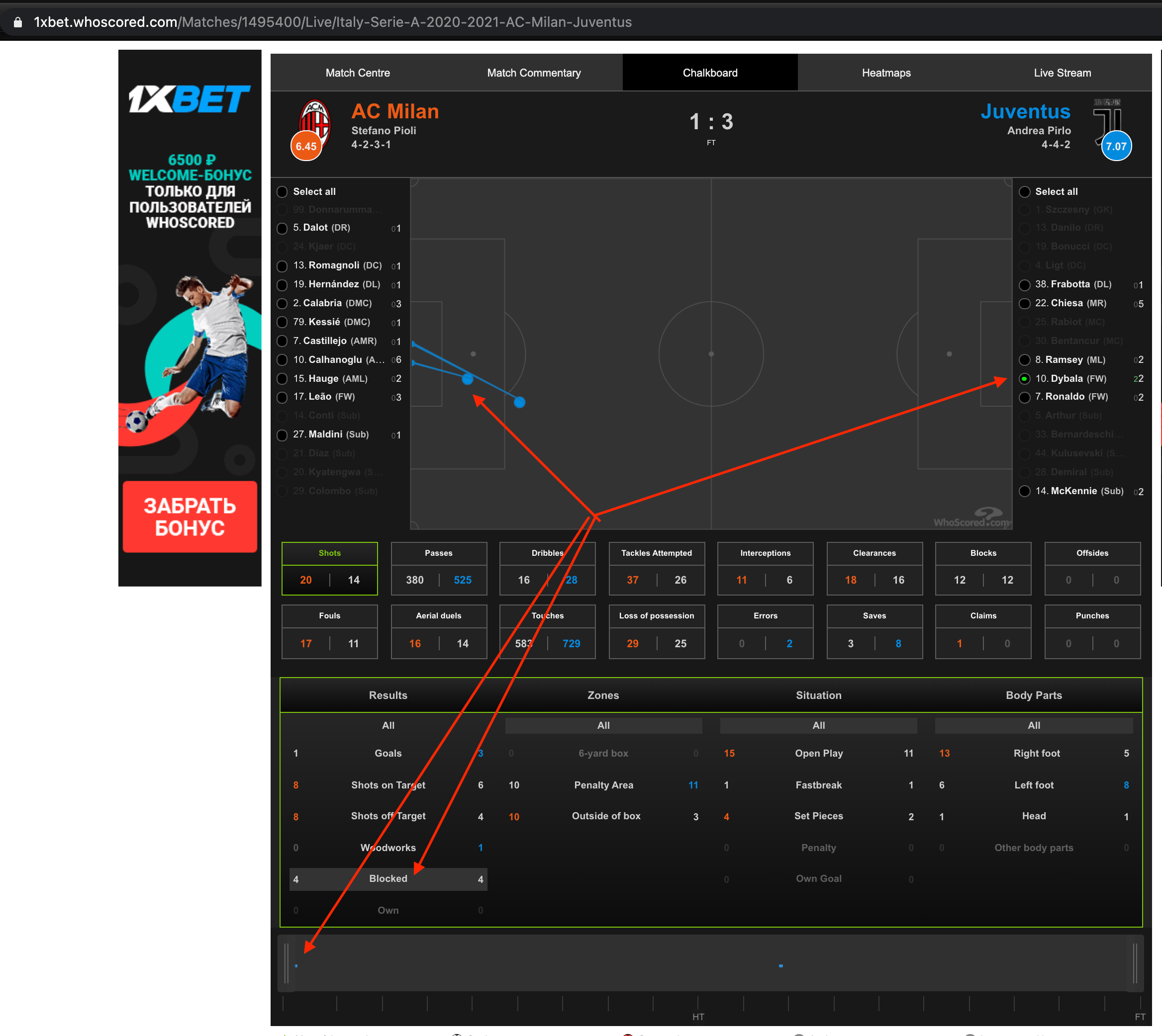 Добрый день, Легалбет. Прошу помощи с споре с БК 1Хставка. Купон №16293550881 рассчитан неверно! В официальном источнике, на сайте Серии А > >(принт-скрин прилагаю) количество ударов В створ ворот 7:10 в пользу Ювентуса. Игру я смотрел лично и сделал хорошую ставку, визуальный подсчет по просмотру игры говорит о том же самом! В 1Х же указано 8:6??? Откуда эти цифры никто не знает, похоже и они сами! На мои вопросы в поддержку указать официальный источник откуда берутся эти данные, оператор мямлит какую дичь. Уверен что это простое недоразумение, прошу помочь пересчитать купон. Заранее спасибо!