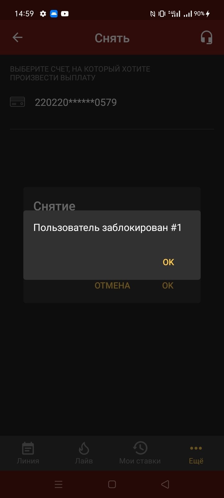 Здравствуйте, хочу сказать, что играла постоянно в других компаниях, и все было хорошо с выводом, и прочим. в общем проблем не было никаких пока не наткнулась на рекламу Олимпа.. "ЗАМАНИЛ ИХ БОНУС В 500Р' Я начала играть, закинув 500 рублей, и отыграв ещё 500 р бонусных по их правилам.В общей сложности повезло заработать, отмечаю ПОВЕЗЛО! Есть так же проигрыши. Заработала я ₽. Так вот при выводе сначала заблокировали меня. Попросили обратиться в поддержку, и тут началось. Я всегда играла на легальных бк, что бы у меня такого не было, столько насмотрелись про это, и начиталась.. Честно сказать не ожидала такого от бк Олимп. Так вот, написала я туда, там попросили сначала те же документы, что и в начале. Только ещё и фото с ним, и отличного качества. Если у вас телефон не очень с фронтальной камерой, это ваши проблемы. Потом через некоторое время, они просят предоставить ещё 5 документов подтверждающих личность помимо тех что присылала. 5 доков Карл!!! Им все равно есть у тебя они или нет, если нет пришли чё угодно, и со всеми документами нужно ещё и селфи делать.. отличного качества, потом просят договор сотового оператора, квитанции об оплате, и тянут время. В надежде, что игрок проиграет свои деньги или попросту придумат все, что бы не выплатить, и тому прочее.. В конторе есть плюсы, и довольно много, но зачем эти плюсы, если контора не выплачивает денег честным игрокам ....