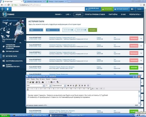 Решил вывести часть средств со счета. На счет мной было внесено 60000 рублей. Сделал запрос, они его отменили, как будто бы отменен пользователем. И тут же добавили проигрышные ставки. Мошенники! Люди не переводите туда даже 100р., даже если хотите проиграть, что бы эта контора когда нибудь загнулась!