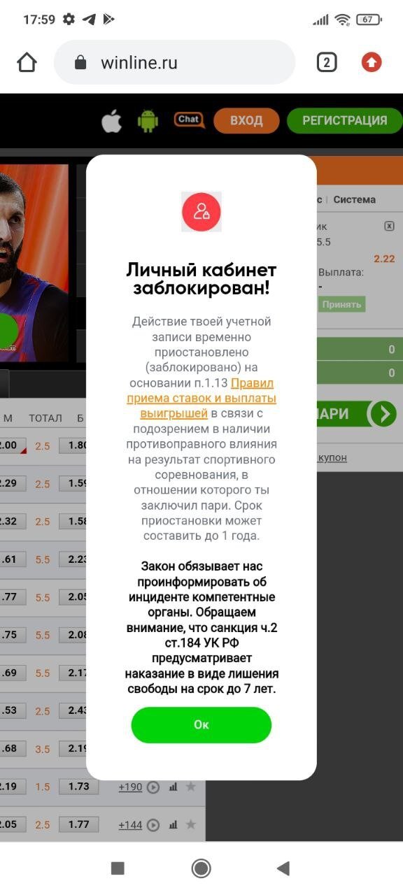 Заказал у Бк Винлайн вывод средств, они запросили проверку документов, со мной связался их представитель я показал паспорт и именную карту, затем они попросили прислать им на почту договор об оказании услуг(что номер принадлежит мне), я отправил им договор с подписью и печатью, затем они запросили селфи с этим договором и надписью Винлайн, я также все отправил, проверка была пройдена успешно сегодня и можно было вывести деньги, заказал вывод несколько раз по 15000; они снова запустили проверку после чего заблокировали аккаунт