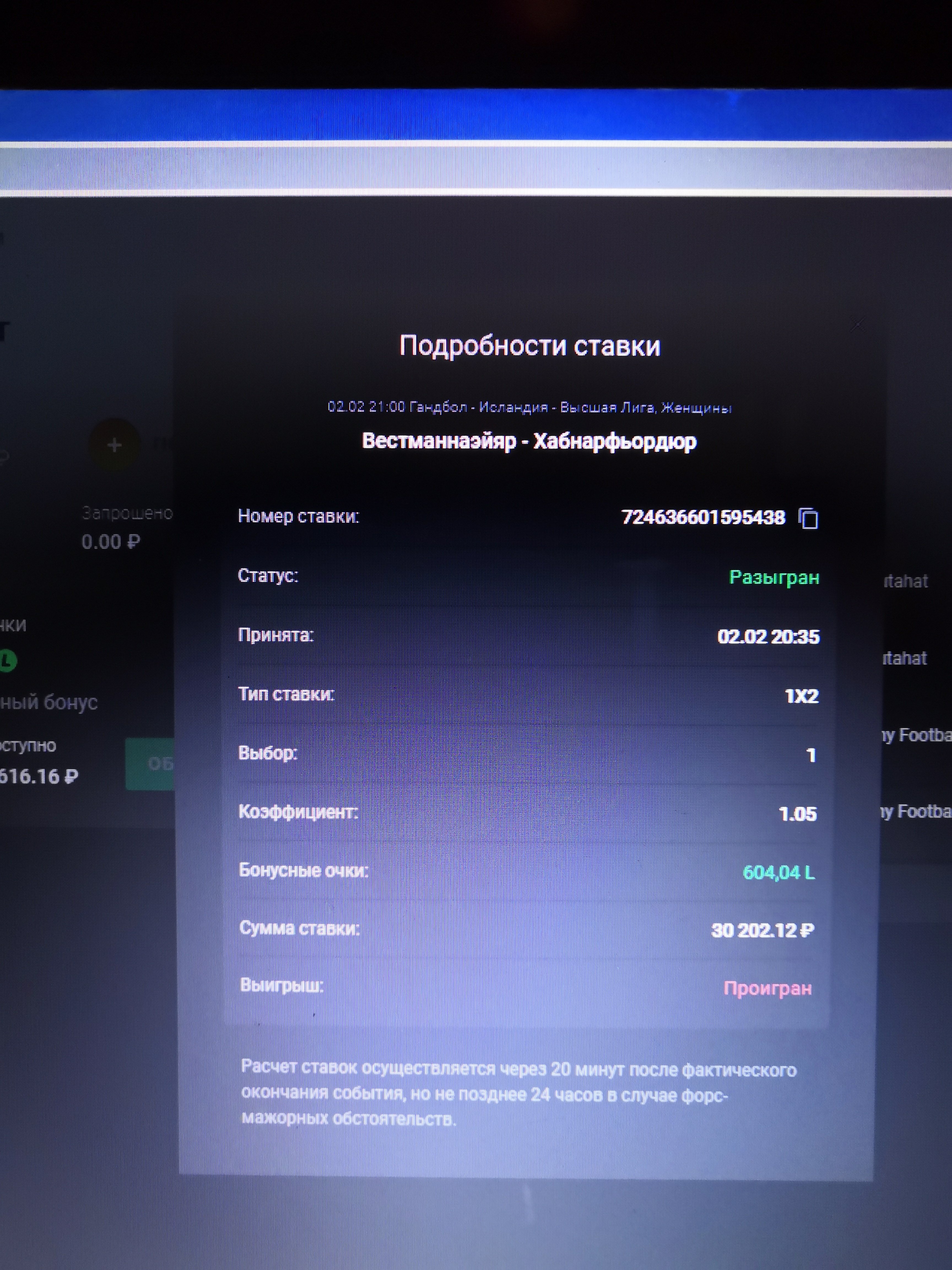 я поставил 21:00 Гандбол - Исландия - Высшая Лига, ЖенщиныВестманнаэйяр - Хабнарфьордюр победа1 за 1,05а реально игралиВестманнаэйяр - хаукар Хабнарфьордюр а это совершенно разные команды как видно из ссылки(предоставлена букмекером) ОТВЕТ Конторы БК Леон: Речь идет об одном и том же матче Название команд без перевода следующее: IBV Vestmannaeyjar vs. Haukar Hafnarfjordur. Перевод с иностранных языков названий команд, фамилий участников событий, мест проведения событий, исходов и т.д., осуществляется исключительно для удобства участников азартных игр. Организатор азартной игры не несет ответственность и не принимает претензии относительно корректности перевода. Неточность в переводе или отсутствие перевода не является основанием для признания пари недействительными и выплате по ним как выигрыш с коэффициентом выигрыша равным САМОЕ ИНТЕРЕСНОЕ НАЧАЛОСЬ НА ВТОРОЙ ДЕНЬ КОГДА ИГРА МУЖЧИНЫ ИСЛАНДИИ там вдруг хаукар стал хаукаром аHafnarfjörður Хабнарфьордюром я сделал скрины могу выслать ОТКАЗЫВАЮТСЯ СДЕЛАТЬ ВОЗВРАТ хотя очевидно что указана не та команда и перевод не причем ЭТА ССЫЛКА С ИМПОРТНОГО РЕСУРСА-также предоставлена букмекером могу выслать всю переписку с ними ПОДДЕРЖКА ОТВЕЧАЮТ КАК РОБОТ не слушая аргументов ЕСЛИ СМОЖЕТЕ ПОМОГИТЕ ЗАРАНЕЕ СПАСИБО
