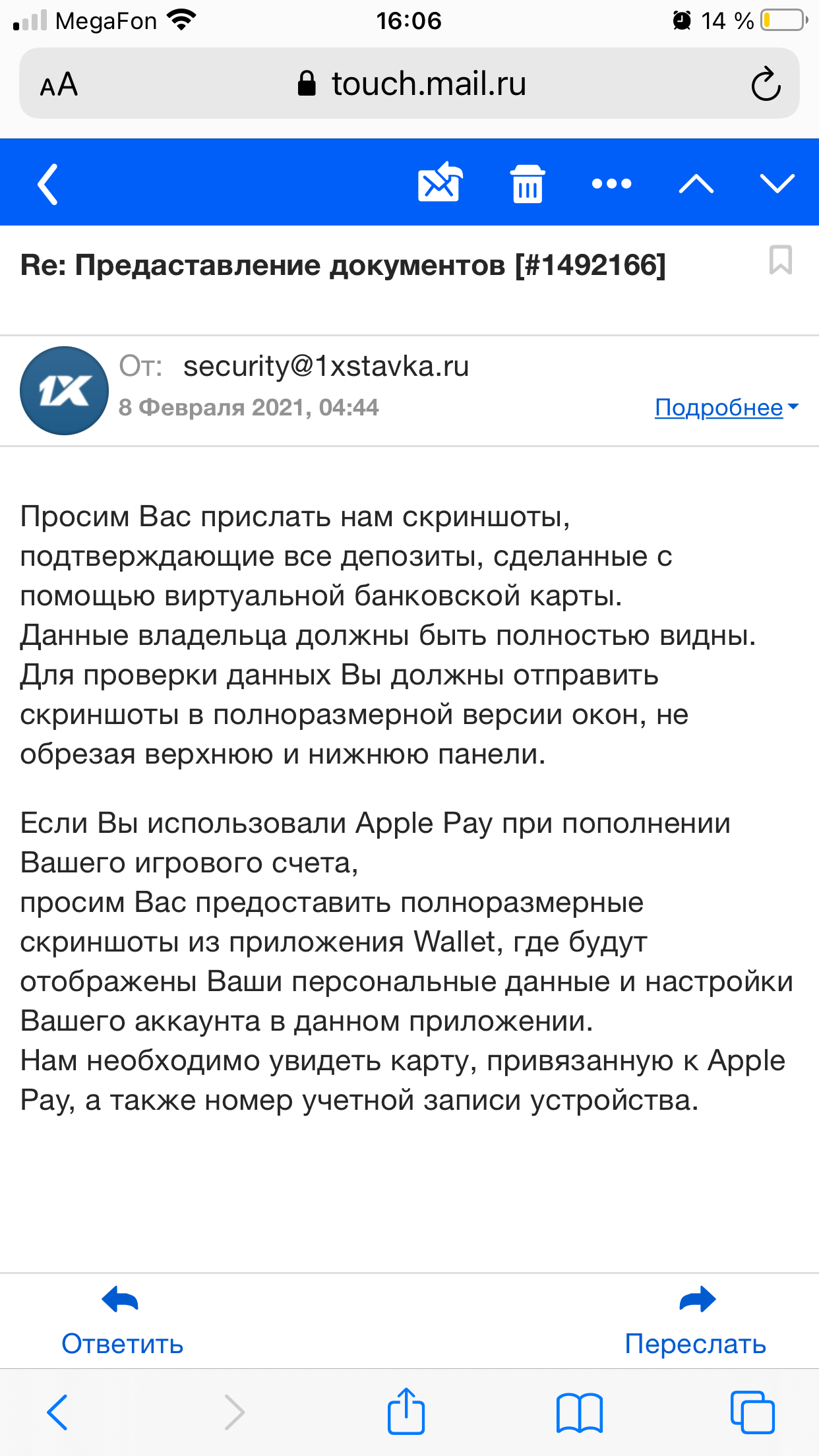 Добрый день помогите пожалуйста решить возникший вопрос по выводу денежных средств с букмекерской конторы 1xставка выслал все необходимые документы но сотрудники службы безопастности не хотят разблокировать счёт для вывода денежных средств