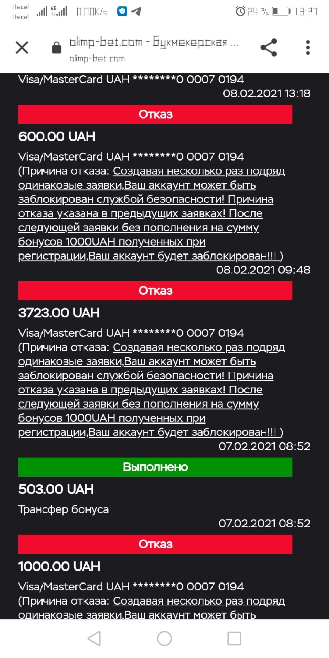 Ваша жалоба - на офшорную БК Olimp-bet.com. Ее деятельность на территории РФ незаконна. Арбитраж Legalbet помогает решать споры только с легальными букмекерами.