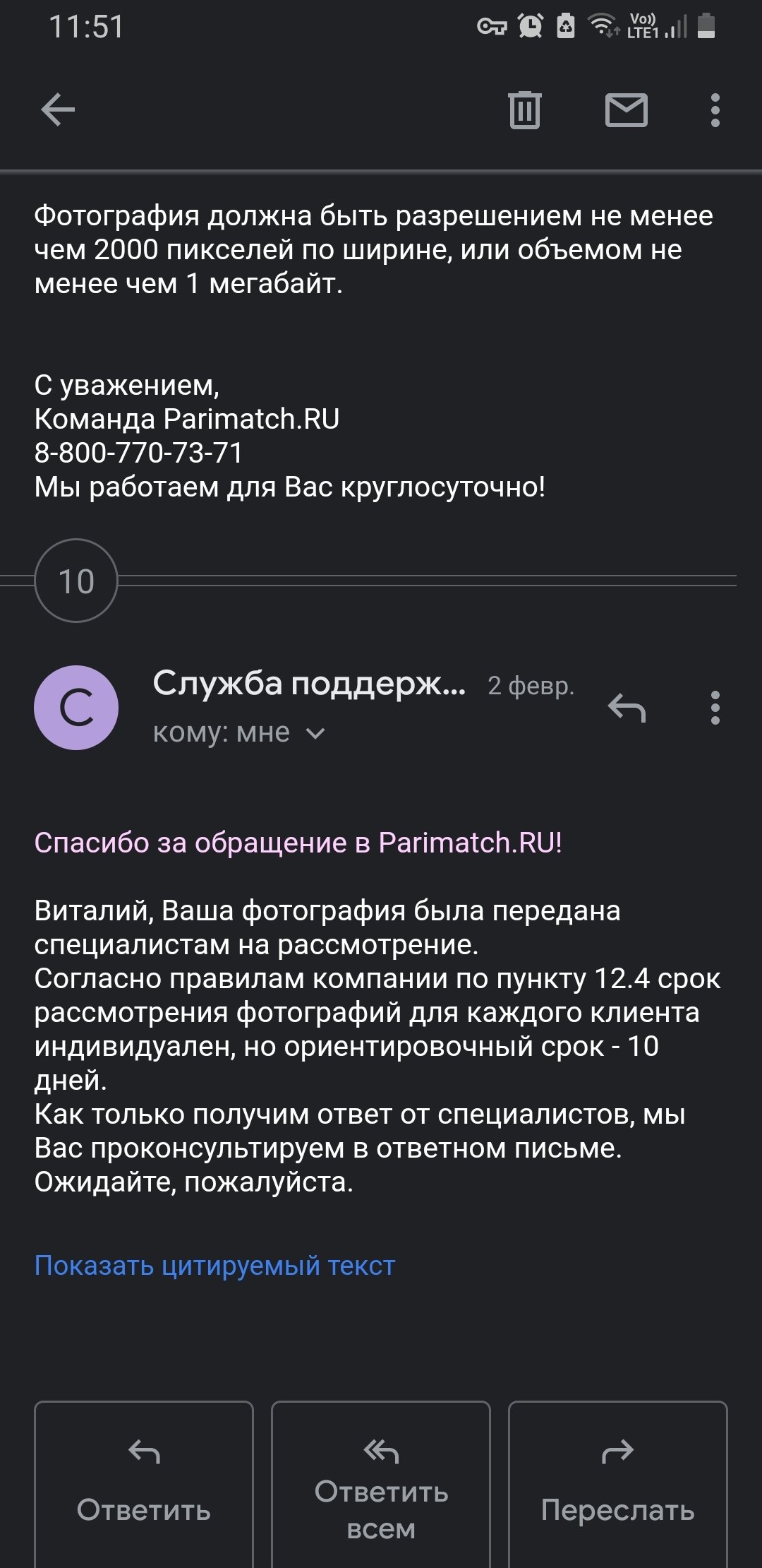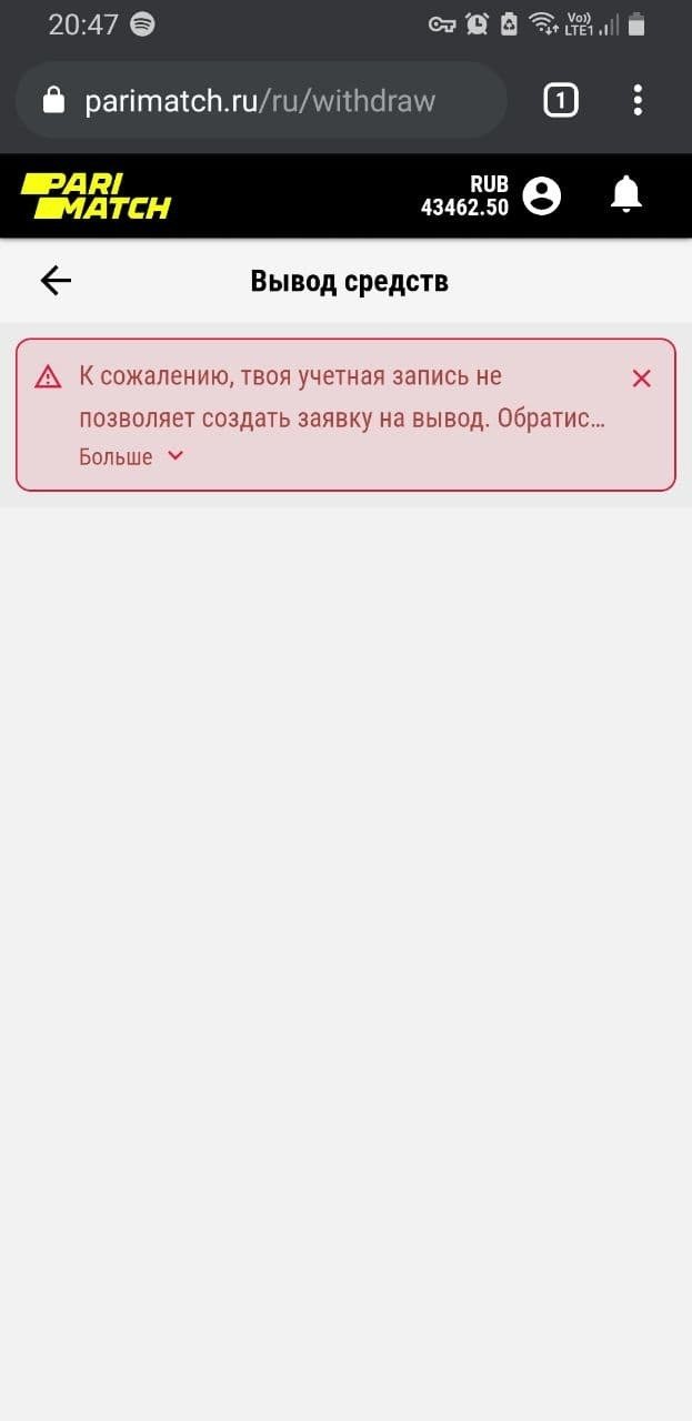 После попытки вывести 25 января, вывело окно "К сожалению, твоя учетная запись не позволяет создать заявку на вывод.", повторная верификация началась с 25 по 2 февраля в этот период отправлялись разнообразные фото для подтверждения личность (обычная практика KYC), с 2 февраля написали ждать около 10 дней пока все проверят, прошло уже 2 недели - результата нет, начинает немного напрягать, спасибо. Ставки в основном в последнее время были на баскетбол (с ОТ). 218431088