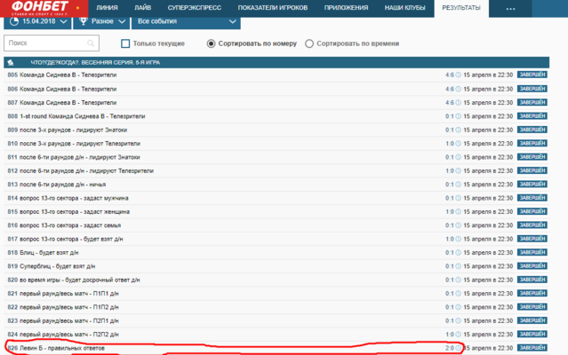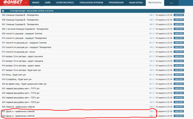 Вы посмотрите что БК ФОНБЕТ опубликовала в результатах и задумайтесь: Левин Б - правильных ответов 2:0. Это как понимать? Борис дал правильных ответов 2, а 0 - что? - неправильных, что ли? Или это счёт такой игры между букмекером и игроком: букмекеру 2, а игроку 0. Или БК ФОНБЕТ уже до того... (даже не знаю как выразиться - прямо издевательство какое), что позволяет считать нас дебилами, а мы должны воспринимать это как данность? Так, что ли? Или как?