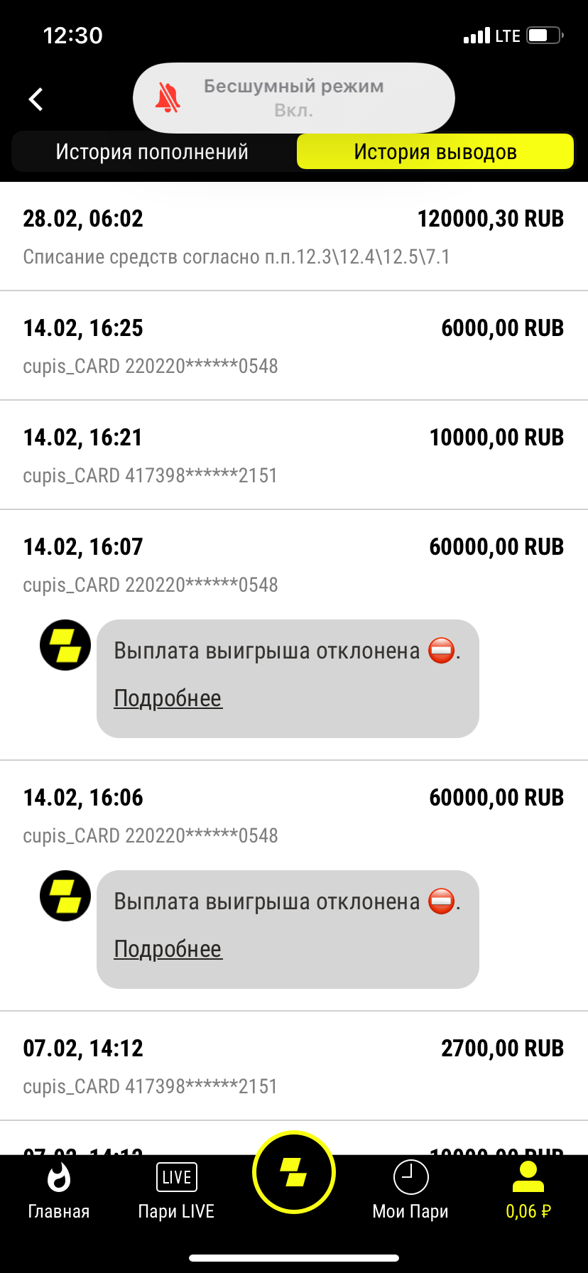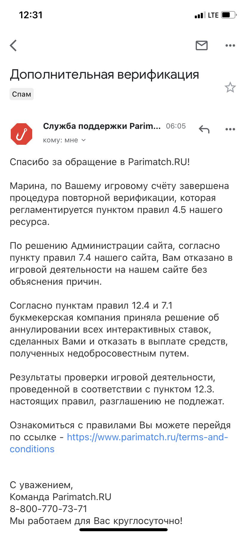 пополнили счёт на 100т.руб. Сделали ставки. Выйграли. (Выигрыш оставил 36т.о) пытаемся вывести деньги. Пропускает сначала 10т.р. Потом 6 т.р, вывод остальной суммы (120тыс руб) букмекер блокирует. Просят пройти дополнительную верификацию. Предоставляем все необходимые документы аннулируют счёт по причине «нелегального получения выигрыша». Любые другие комментарии относительно причины аннулирования не дают, ссылаясь на какую-то статью своих правил о неразглашении . Единственное объяснение - сумма средств, на которую пополняли счёт, за все время игровой деятельности, значительно меньше той, что была выведена. Есть ли способ вернуть свои деньги?