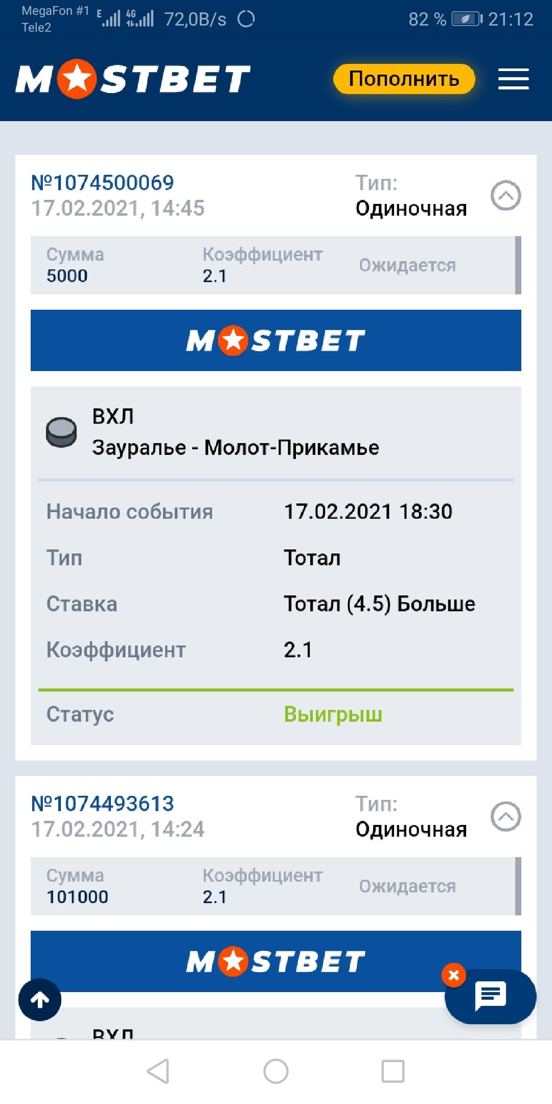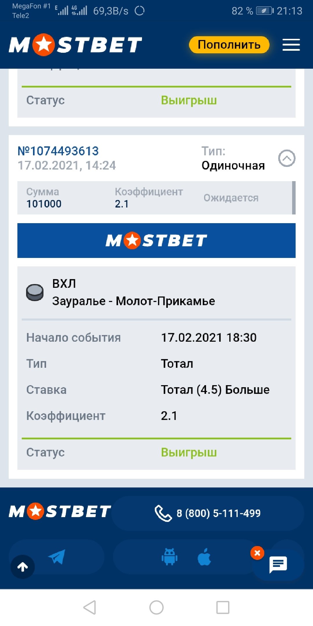 Здравствуйте! Произошла заморозка счета букмекерской конторой Mostbet и задержкой выплаты выигрыша в размере 222600 рублей, номер аккаунта: ID 15174631. Зарегистрировался года , сделал две ставки года на матч ВХЛ Зауралье-Молот-Прикамье , одна ставка 101000 рублей номер купона 1074493613 от года и вторая ставка 5000 рублей номер купона 107500069 от года. Обе ставки с коэффициентом 2.1, тип тотал 4,5 больше. Ставки выиграли, аккаунт сразу заморозили написали,что в целях безопасности, связался с тех. поддержкой, выслал им на почту фото паспорта и СНИЛС, фото лица с паспортом в развернутом виде, назначили видео конференцию года на 11:30 часов МСК, я ее прошел. года написал опять в МОСТБЕТ, ответили, чтобы ожидал до 60 суток,на мой взгляд происходит удержание и невыплата выигрыша и депозита.По настоящее время счет заблокирован, аккаунт заморожен года пришло сообщение о том, что аккаунт заблокирован без возможности восстановления по пункту правил 2.5..Ставки делал сам, в конторе,только зарегистрировался и две ставки сразу сыграли и их заморозили. Прочитав много отзывов вижу,что ошибся с выбором букмекерской конторы .Не желает выплачивать выигрыши. Настаиваю о выплате обратно незаконно удерживаемого депозита,не говоря уже о выигрыше.Прошу разобраться в данном вопросе.Заранее благодарен.