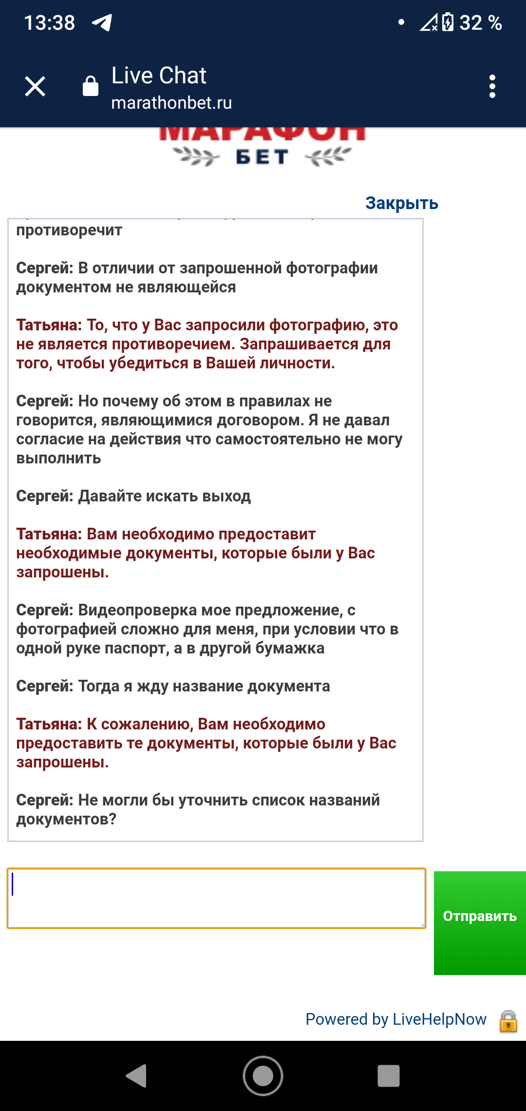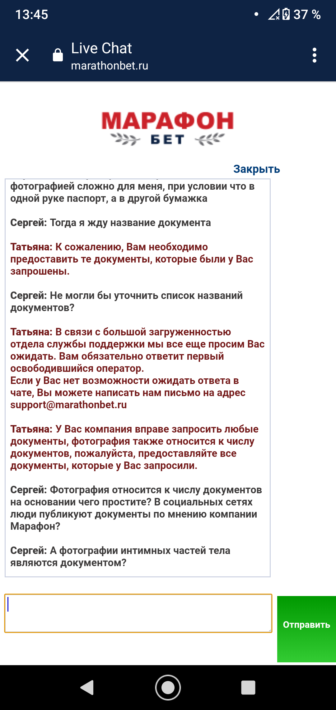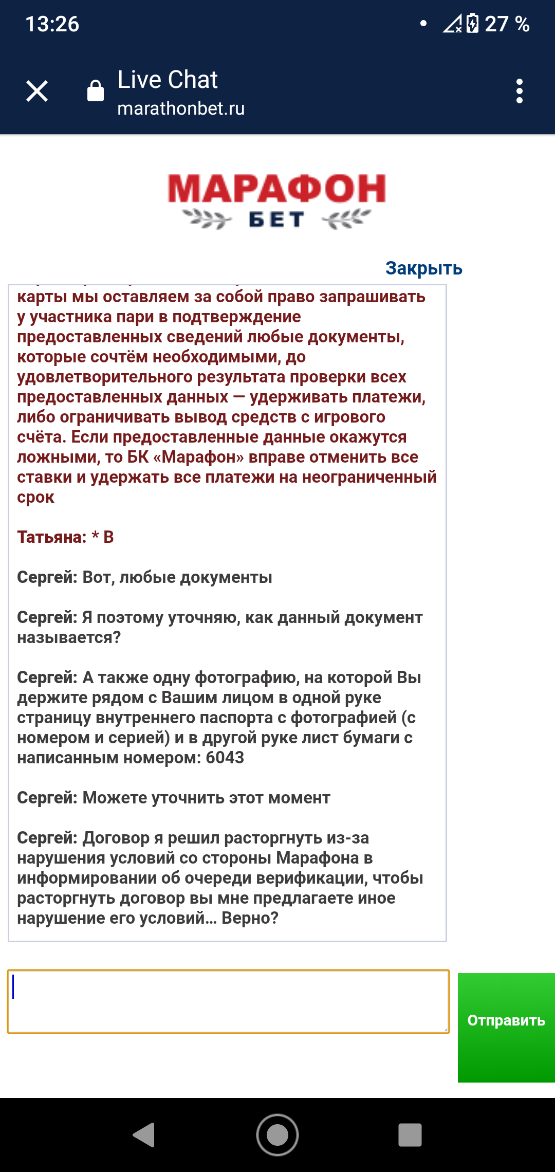 17 марта, БК Марафон запросили у меня 2й и 3й символы... В ответ я отправил им 3й и 4й символы, вместо 2го и 3го
