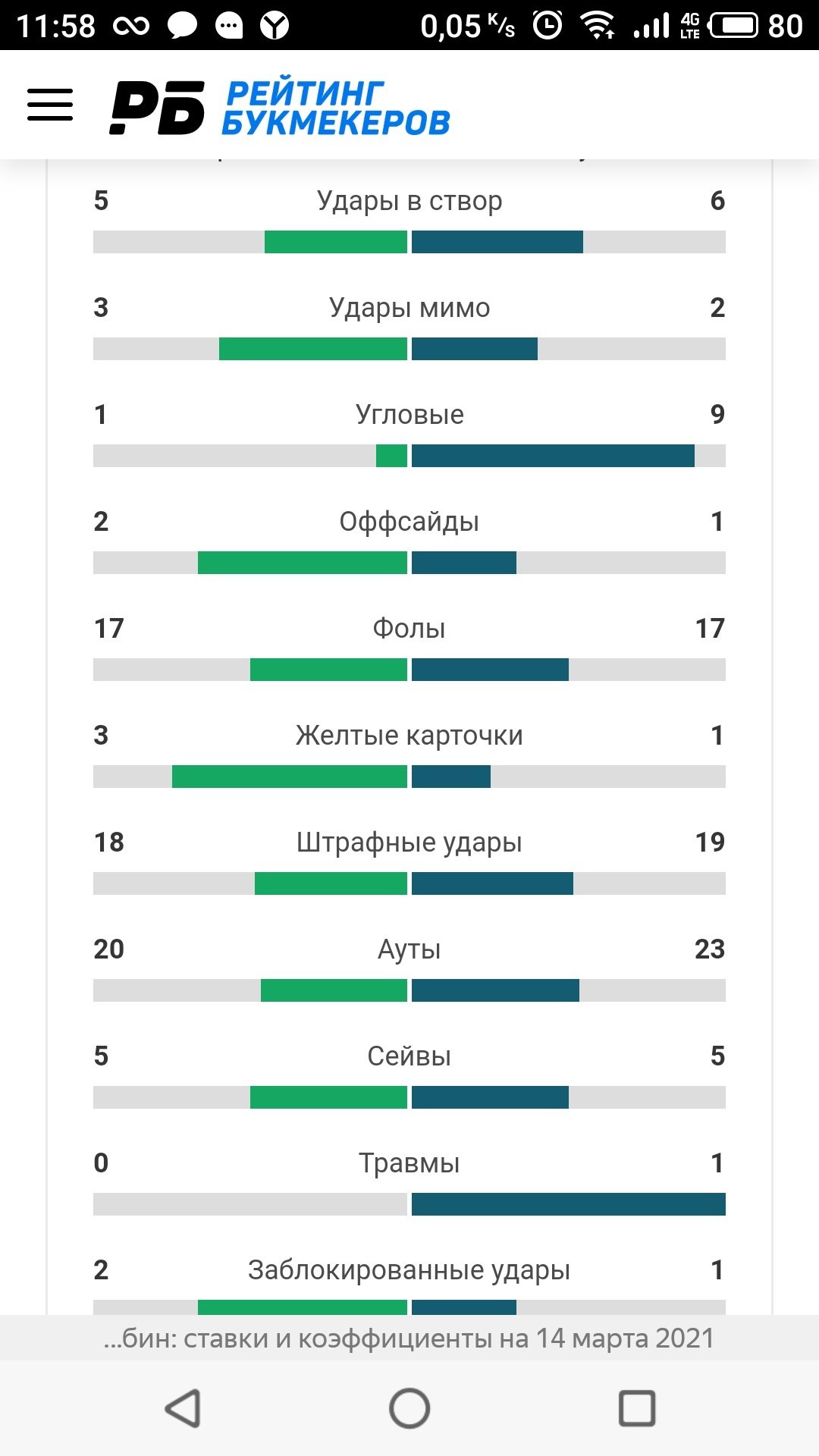 103УДАРЫ МИМО ВОРОТ21УГЛОВЫЕ УДАРЫ918ШТРАФНЫЕ УДАРЫ192ОФСАЙДЫ15УДАРЫ ОТ ВОРОТ620АУТЫ233ЖЕЛТЫЕ КАРТОЧКИ15ВРАТАРСКИЕ СЕЙВЫ517ФОЛЫ17