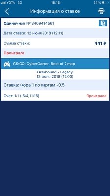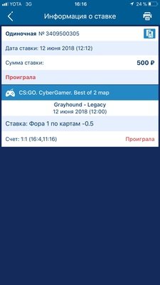 Доброго времени суток! Впервые сталкиваюсь с не очень приятной ситуацией связанной с этой БК. Вообщем случилось следующее: Ставил на данный матч на победу первых с форой -0.5 (победа по картам). Матч из одной карты, в котировках у букмекера было написано что это матч из одной карты (best of 1 - далее сокращённо бо1). Сама лига проходит в формате каждая команда проводит две встречи друг с другом на данной стадии. Т.е переводя на традиционный спорт это «домашняя» и «выездная» встреча. Вообщем по факту я поставил на бо1, на фору по картам -0,5 на первых, которые в результате и выиграли эту бо1 => 1:0 минус 0,5 на первых = 0,5 в мою пользу. Но букмекер в данном случае из двух серий бо1 сделал одну серию бо2 ВООБЩЕ ни где не упомянув этого (скриншоты моих рассчитанных ставок прилагаются). Далее они исправляют у меня в истории ставок котировку бо1 на бо2 и рассчитывают ставку как проигрыш - благо я успел утром сделать скриншоты с изначальным вариантом ставок ещё до того как завершилась вторая карта. И ещё один интересный момент это то что только мой матч во вкладке результатов дублируется в двух разных группах (скриншот прилагается) Считаю что в данном случае я плачу за ошибку букмекера при этом они ещё и наглым образом изменили мою ставку «задним числом».