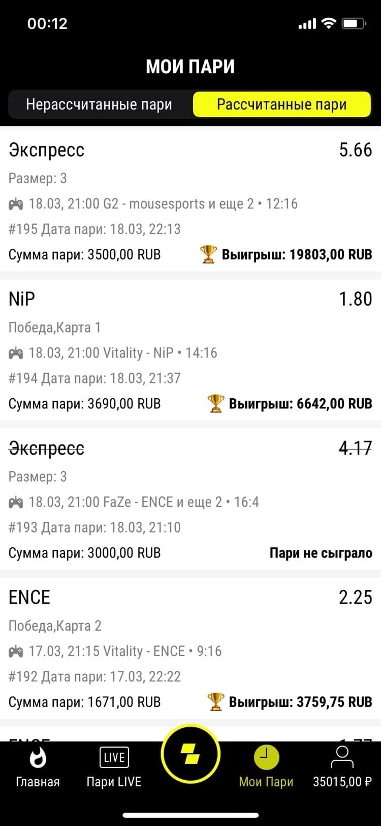 Ставил только на киберспорт (CS:GO) на текущий крупный турнир.