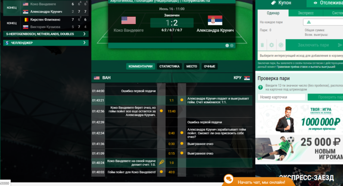 Сделал пари на теннис . На коко вандевеге и александра крунич кто выигрывает 3й розыгрыш 2 го гейма на 3ем сете поставил на первого игрока кеф 500 рублей ставка прошло но кол центр говорит что ставка не прошло везде смотрел и проверил выиграл 1ый игрок тоист вандевеге