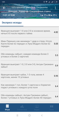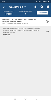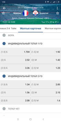 А вот для наглядности экспресс исход на матч хорватов и французов, а также для тех кто трактует ставки, как хотят.посмотрите на экспресс исход с коэффициентом 5.5.и трактуйте как выгоднее, но судя по логике некоторых здесь-то каждая команда должна больше чем 2 карточки получить.так вот во втором скрине посмотрите коэффициенты, которые контора даёт просто на карточки.