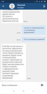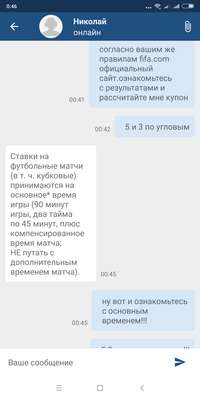Я думаю, что им придется скоро объясняться в том как они формируют линию и описание ставки.жаль, с выигрышной ставки общение с саппортом не осталось.правила очень грамотно для себя прописали, да вот только двояко ставки трактуют.читал тут отзывы и комментарии администрации, складывается ощущение, что букмекер всегда прав.