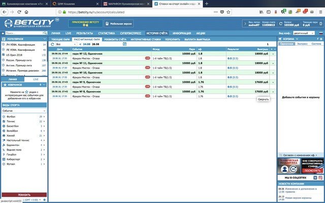 Купил прогноз, поставил ставку 10 000 рублей на ФУТБОЛ, коэффициент 1.6, ставка сыграла, но Бетсити не хочет платить выигрыш! Отменили ставку, хотя я нашел человека, ему Бетсити заплатили (потому что он до этого прилично оставил денег у них). Таким образом БЕТСИТИ выборочно платит, одним платит, другим НЕ ПЛАТИТ!