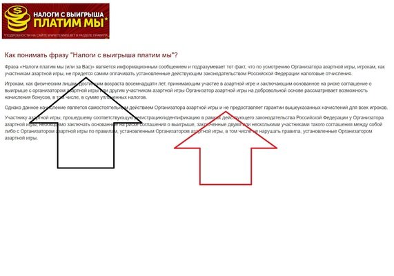 2. Объявление на сайте "Налоги с выигрыша платим мы" означает только то, что участникам азартной игры не придется платить налоги. Никакого намека на то, что оно что-то подразумевает или оставляет на усмотрение Организатора в нем нету. Это не более, чем нелепая отписка.