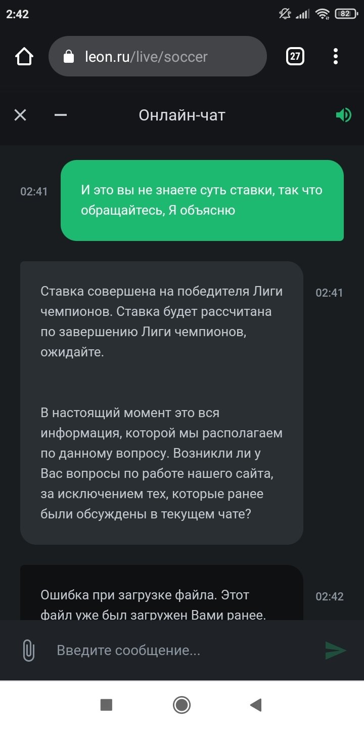 На групповом этапе лиги чемпионов, сделал ставку: какой английский клуб пройдет дальше. Выбрал Сити. Групповой этап закончился, но пари не рассчитали. Якобы в борьбе не один английский клуб. Хорошо. Сегодня Сити вышел в финал, пишу: где расчет ставки. Гениальный ответ вы ставили на победителя лиги чемпионов!!! Совсем *********...