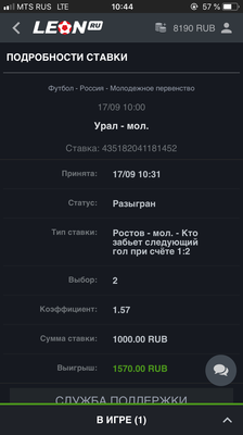 Ставка пользователя была отменена согласно Правилам ставок на спорт БК Леон: