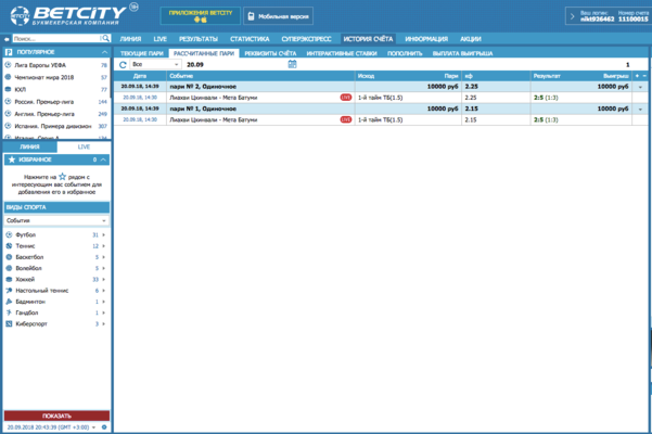 Зарегистрировался. Поставил 2 ставки-live на футбол в общей сумме 20 000 руб. Приняли. Рассчитали согласно коэффициентам в купоне. Однако через полчаса-час мои выигрышные ставки превратились в мой депозит - попросту сделали возврат с коэффициентом 1. И как это понимать? Общение в чате и по емайл со службой поддержкой ничем не увенчалось. Эти их дежурные отписки не стоят ровным счетом ничего. Рассчитываю на Ваш ресурс в урегулировании моего вопроса, раз сотрудники БК Бетсити абсолютно беспомощны в своей работе.