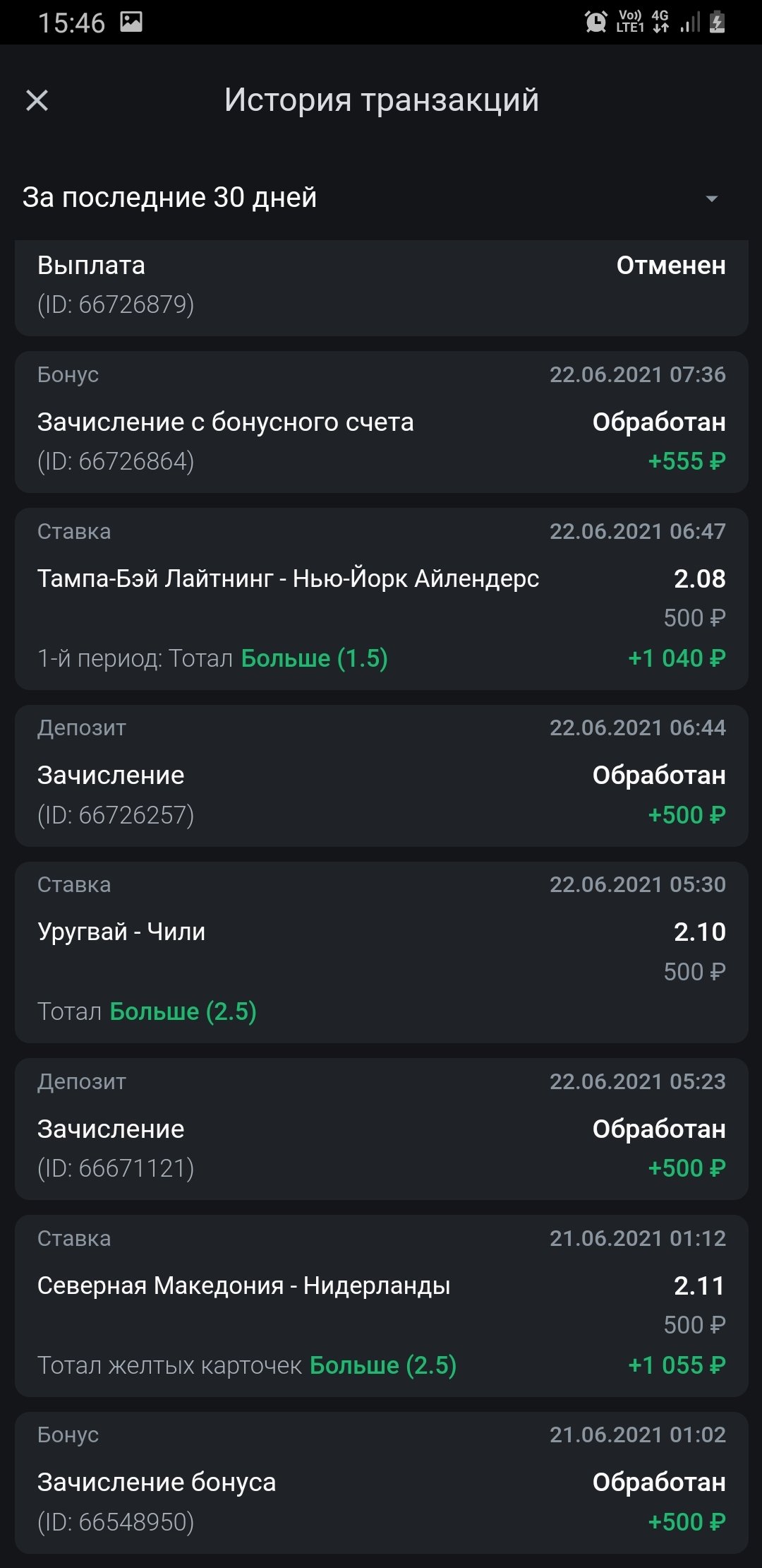 Прошу помочь в разрешении вопроса, так как ставлю более 15 лет, но с такой наглостью со стороны БК сталкиваюсь впервые!!! Ставка была сделана 11 мая в 3:42 в перерыве после 2 периода на игру Бостон Айлендерс Тотал меньше 6.5 за коф при счете 2:2 Заключил пари, никаких проблем не было, все приняли!!! Но после окончания игры мне дали возврат ставки по причине «все ставки на это событие в период с 3:34:40 по 03:51:21 по мск ПРИНИМАЛИСЬ С НЕВЕРНЫМИ коэффициентами и были отменены согласна правилам бк леон, с которыми вы ознакомились и согласились при регистрации счёта» Я конечно понимаю все ошибаются и бывает что неправильно дали коэффициент и тут же исправили, на это я согласен, НО я не соглашался что мою ставку примут, закончится игра и только после того как она выиграет, мне скажут ой коэффициент неправильный был, возврат!!! Я никогда такого не встречал!!! Во-первых как можно почти 17 минут давать неверный коэффициент на самый главный матч вечера!!! Во-вторых как коэффициент может быть неверным если Айлендерс нужна была победа только в основное время, они во 2 периоде забили 3 шайбы, что им мешало забить их и в третьем, я ставил свои средства, я рисковал для чего, чтобы проиграть или в лучшем случае получить возврат, зачем тогда ставить если в случае выигрыша получишь лишь возврат, по абсолютно выдуманной причине!!! Более того когда я хотел поставить, коэффициент был , но тут же приём ставок был закрыт, я зашёл на Винлайн где коэффициент на такое же событие Тотал меньше 6.5 был , я решил вывести деньги с Бк леон, но тут же увидел что приём ставок снова открыт и коэффициент , что говорит о том что они закрывали приём ставок для корректировки коэффициентов, затем открыли его уже все скорректировав, как тут может быть неверный коэффициент???!!! Я видел что идентичная проблема была у пользователя и его ставку пересчитали как выигрыш, надеюсь вы и мне поможете в решении данного вопроса, потому что как можно почти 17 минут давать неверный коэффициент и с чего он неверный??? Пусть тогда скажут какой коэффициент был верный и рассчитают мне с этим коэффициентом, ставку же я сделал, рисковал своими средствами, ответственность же должны нести Бк, откуда я должен знать какие у них коэффициенты верные, а какие нет, для этого нужно закрывать приём ставок, а не давать возврат по окончанию игры!!! Надеюсь в скором времени вы поможете в решении данного вопроса и моя жалоба будет полезна и другим игрокам в данной бк!
