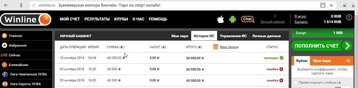 Здравствуйте! Хочу поделиться своим впечатлением от БК Winline и пожаловаться. Внес первый депозит 25 июля 18г. Все было нормально до 2 октября. Заводил деньги со своей банковской карты, выводил на нее же. Нормально, отыграл и получил свой бонус по акции 18500р. И претензий к БК никаких у меня не было. До последнего времени вообще думал что я сильно проигрался, но все пересчитал и оказывается что я в плюсе, (за все время) округлим до 48т.р. Только не считайте что это много, т.к. я внес (за все время) 273500р. Получается я в профите всего на 17,5%. Короче говоря, получается, что я "успешный игрок" и теперь мне становиться более менее понятно почему БК Winline предпринял ниже следующие действия. Оговорюсь сразу все мои ставки это исключительно футбол. (то что я люблю) 1. Мне срезали максимальную ставку до 500р. (Я понимаю, мера эффективная что б выжить меня из БК Winline) 2. Мне изменили способ вывода средств, оставив только кошелек ЦУПИС. Этого я не понимаю, хорошо, не хотите что б я у вас играл, я не буду, но почему я не могу вывести свои деньги на свою карту без комиссионных %??? Для тех кто не в курсе - перевод с кошелька ЦУПИС на свою банковскую карту - 2.9% +30р. Я сделал 3 заявки на вывод средств из БК Winline на общую сумму 140т.р. (максимальная сумма одного перевода на кошелек ЦУПИС 60т.р.) Заявка на вывод висит уже сутки... И даже если БК Winline не решила мне не отдавать мой депозит, а все таки выведет мои денежные средства на кошелек ЦУПИС я просто так потеряю больше 4000 рублей на комиссии. Скажу проще, если бы сразу сказали что заводить можешь в БК Winline без комиссии, а выводить с комиссией 2.9%. Я бы рассматривал другую БК изначально. И мне не очень понятно с чем связано изменения моей платежной системы... БК Winline на меня в обиде? лол Конечно же я обращался и в онлайн чат, консультант Давид любезно мне цитировал пункты правил. Пытался дозвониться на телефон поддержки "24/7", правда не разу трубку никто не взял... И написал на эл.почту в службу поддержки БК Winline, но конечно же с таким же успехом можно видимо письмо на деревню дедушке отправить... Да, все идентификации и верификации я проходил, и видео звонок был и с паспортом сидел, разве что в Евросеть не ездил за 300р. им свой паспорт не показывал... но это было давно и после этого я спокойно заводил и выводил деньги. Вообщем резюмируем - т.к. никаких причин БК Winline не указывает, то считаю, что БК Winline просто меня "выкуривает" из-за того что мой профит составляет аж 17.5% за аж 2мес. Эта информация надеюсь будет полезна тем кто захочет поиграть в БК Winline. Пишу жалобу на вашем сайте, т.к. читал другие жалобы и понял что вы помогаете людям. Как я понимаю БК Winline не хочет что б я играл у них, ок, я не буду, но прошу посодействовать в ускорении вывода средств и может они могут изменить свое решение о выводе средств на кошелек ЦУПИС(не понятно чем вызвано такое решение) и позволить мне вывести на свою банковскую карту, тогда я хотя бы не потеряю 4000р. за здорово живешь.