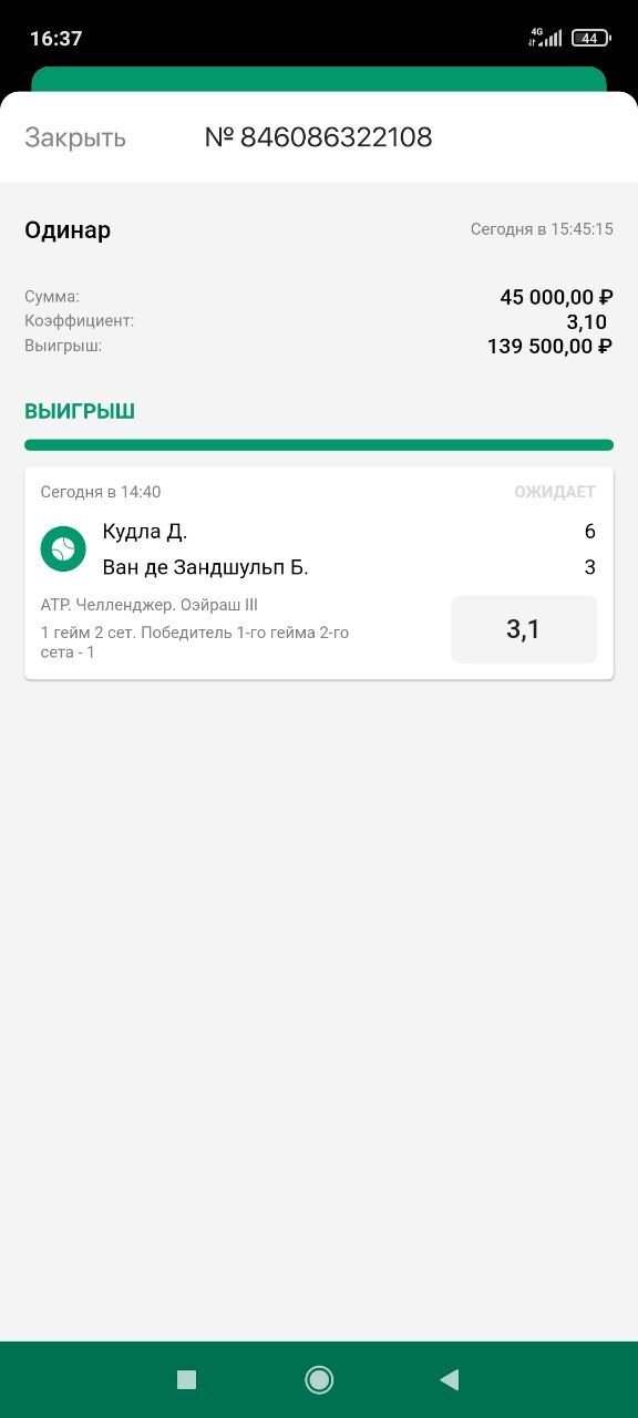 Всем доброго вечера , если он не такой же как у меня. НА днях (18,05,2021 ) ставил в букмекерской конторе (ну раньше считал таковым это заведение , сейчас могу назвать только тем словом , которое упоминается в заголовке , не иначе), день выдался хороший по выигрышным ставкам и ставил в большой теннис, одна из последних ставок была кэф 3.1 сумма 45 000, Кудла - Ван Де Зандшульп ,ставка сыграла и статус стоит выигрыш, деньги зачислились на счет ,но буквально чепез пару минут баланс стал 0 ,сердце екнуло и ушло в пятки, сразу же стал звонить на горячую линию ,на что мне там ответили необходимо ехать или идти в пункт приема ставок и писать там какое то заявление (а заявление я напишу ,только в ФАС ,Роспотребнадзор и прочие другие заведения, которые существуют за счет моих налогов) ,я так и не понял какое заявление, тем более что уже давно в моем городе ( К-Чепецк) это заведение и закрылось (видимо люди прошаренные в городе и сразу раскусили эту забегаловку и не стали туда ходить, я до последнего верил что нормальный букмекер),на горячей линии сказали пишите нам на электронку там подскажут что к чему (что должны подсказать, почему я должен ждать, НЕПОНЯТНО), там все повторилось по почте что надо идти в пункт и писать заявление, на что им ответил что нет в городе ,в итоге пришло сообщение "Обращение принято в работу, срок рассмотрения - до 30 календарных дней."Почему я должен ждать ,почему когда я проигрывал все было ок и никаких действий со стороны конторы не было, когда я выиграл сразу полетели палки в колеса, что за бизнес по-русски только для себя а если отдать что-то ,то иди и доказывай, зачем начинаете услуги свои предлагать если не готовы отдавать, не стыдно вам?? Еще и крутят и показывают во время матчей эту зеленую рекламу, Позорище, до завтра а это не решится проблема, во все органы подам заявление, пусть лесом идет такой букмекер . Приложил скриншоты ставки и раздел история операций ,которая почему то не стала загружаться.