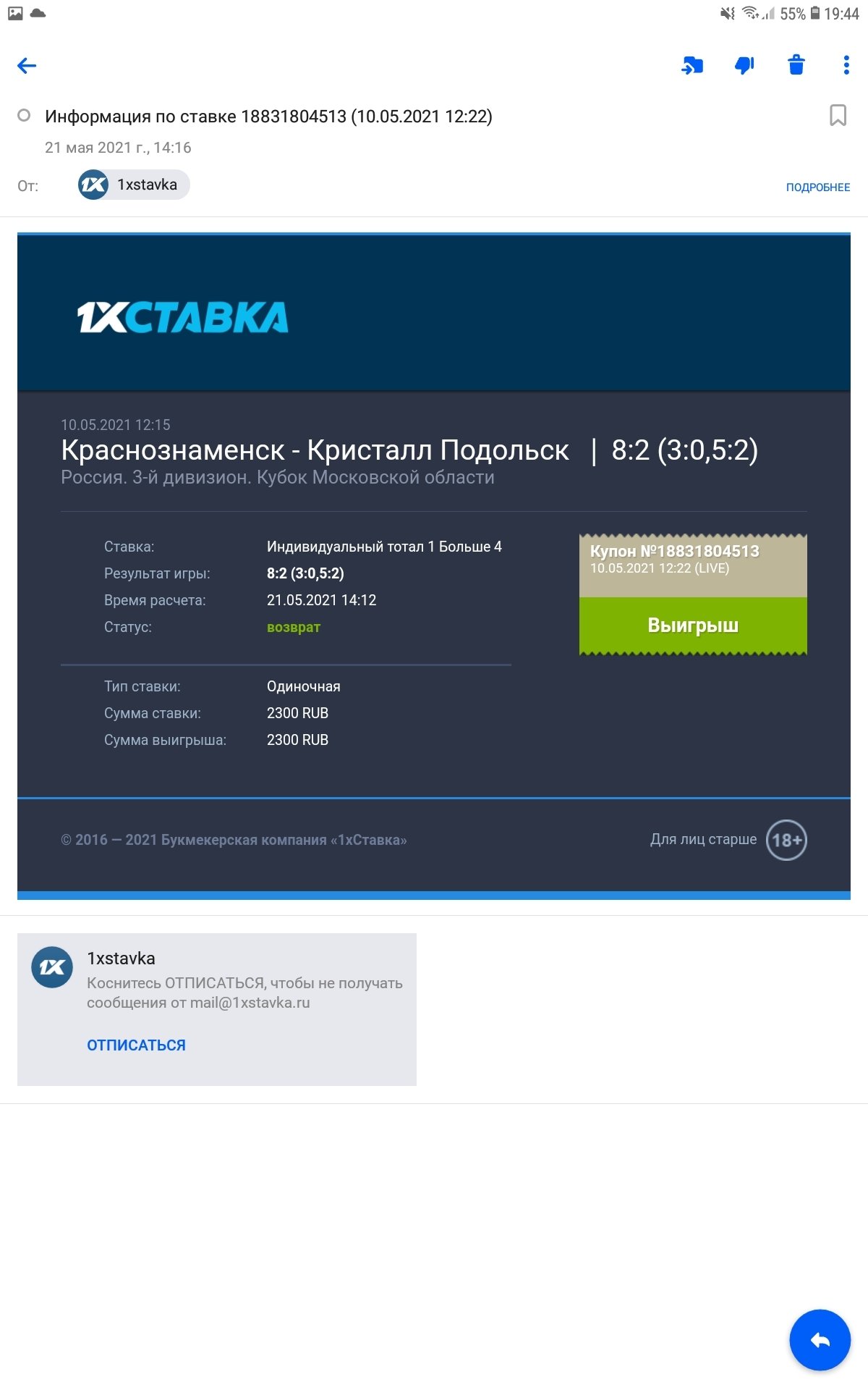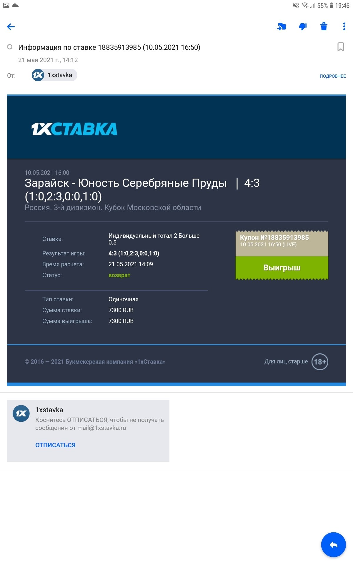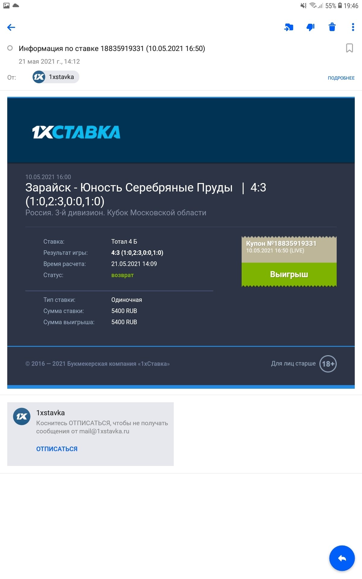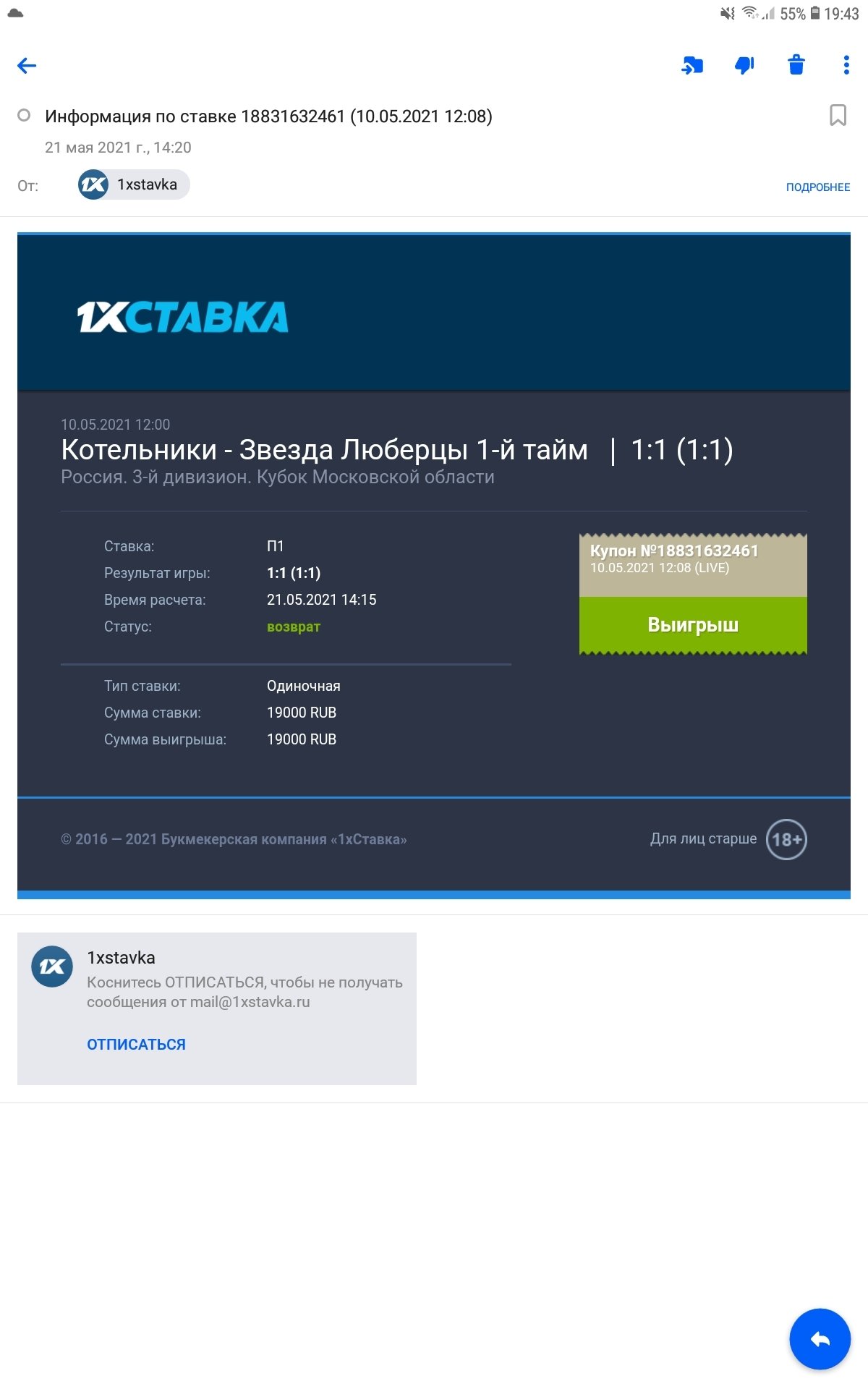 Всем привет, для администрации Легалбета пишу свой номер в бк - 294285945 Суть в том, что 1хставки аннулировали все выигрышные ставки (их было около 20) на сумму примерно рублей. Все чеки, вся инфу помню но думаю тут смысла нет рассказывать. Почитав много жалоб, я тока сейчас понял что зарегистрировался и играл у мошенников. В ответ от бк почему мне аннулировали ставки, 1хставка смешно отвечает что их правилами запрещается повторные ставки, но я не пойму как так запрещено, если технически не было никаких ограничений и мне никто после матча не писал от администрации бк с этой проблемой,. но тока они сделали по хитрому, спустя 2 недели мне мурыжили мозги с документами и тока потом все аннулировали. Так еще счет у меня остался в минусе т.к. минусовые ставки не аннулировали) Пожалуйста разрешите мою проблему. Пари указал в жалобе тока 4-и штуки но если надо все укажу потом