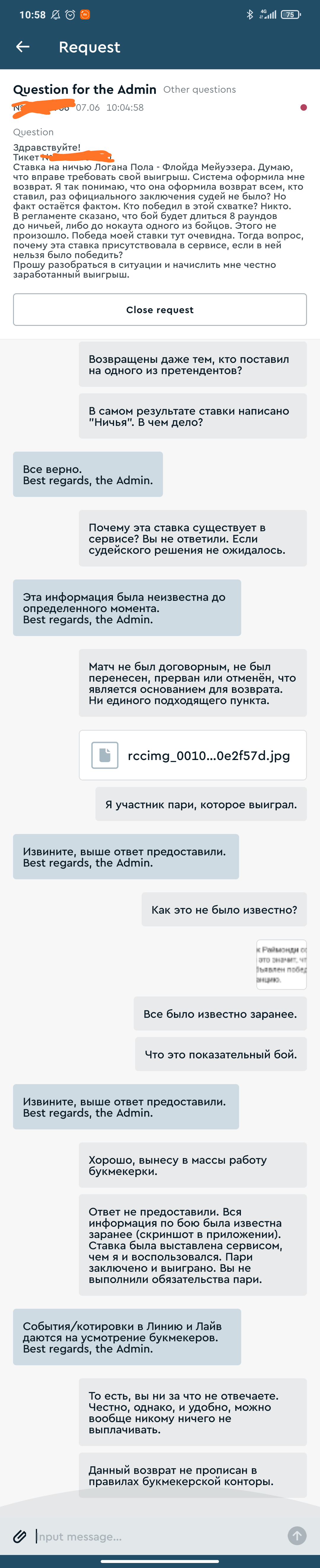 Поставил на бой Мейвезера и Логана Пола 500р на кф 8. Ставил на ничью, и она сыграла, но выплатили только сумму ставки. Помогите решить проблему, операторы не работают у них. Рассчитали с кф 1!!!!!