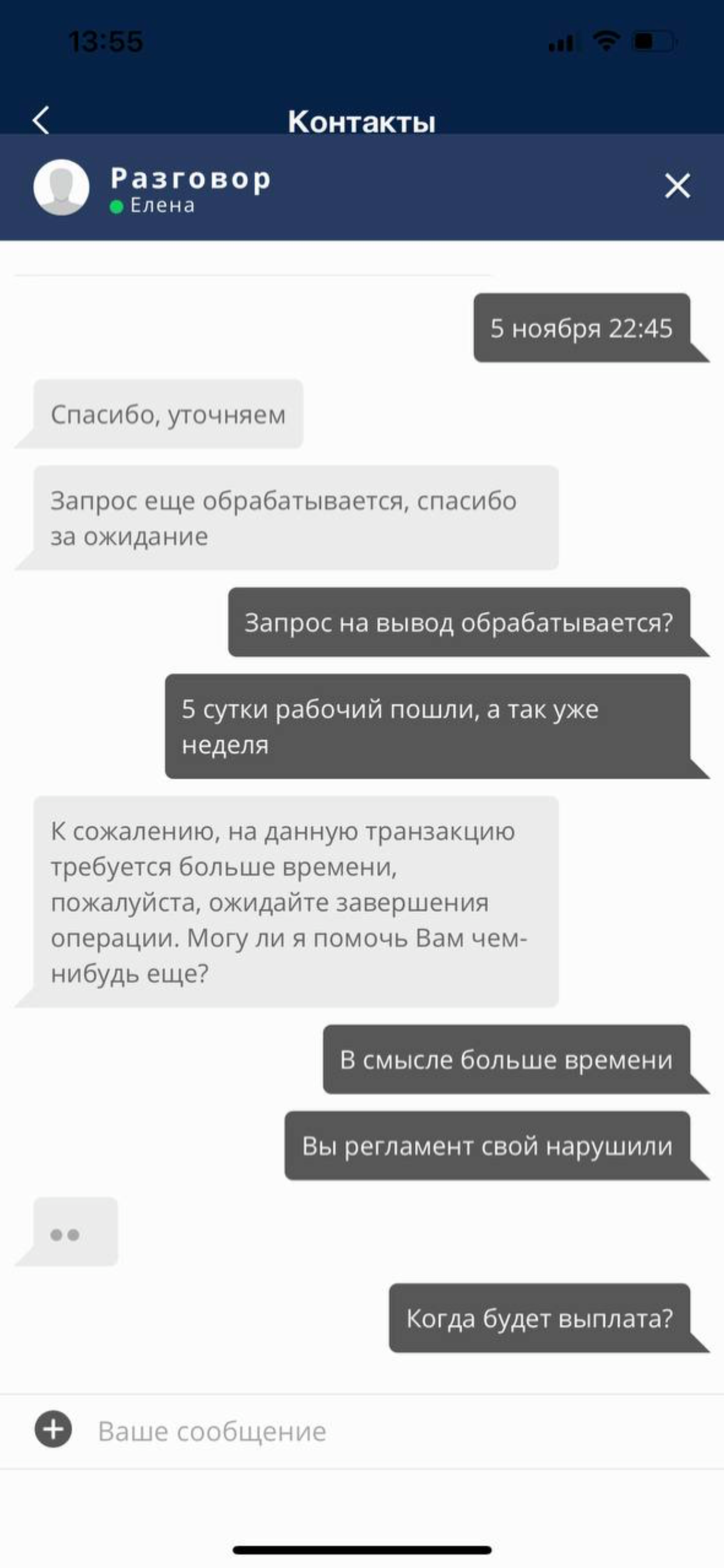 Мой последний комент 21 сентября, ваш ответ 26 октября 💪