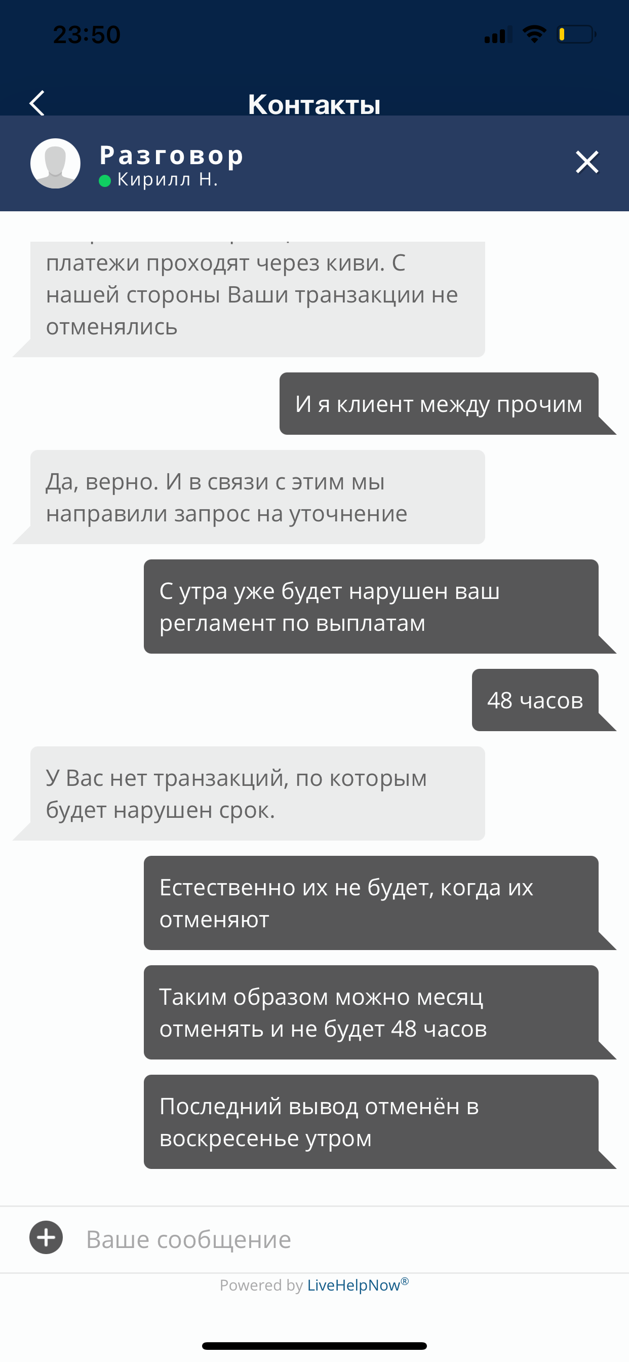 По телефону тоже никакой конкретики, говорят нету никакой информации когда вывод заработает нормально, опять же повторюсь при таких ситуациях пишут большими буквами на самом сайте, что у нас технические сложности с выводом, решаться они в такие то сроки, а тут, что то мутное и не понятное, никто ничего не знает.
