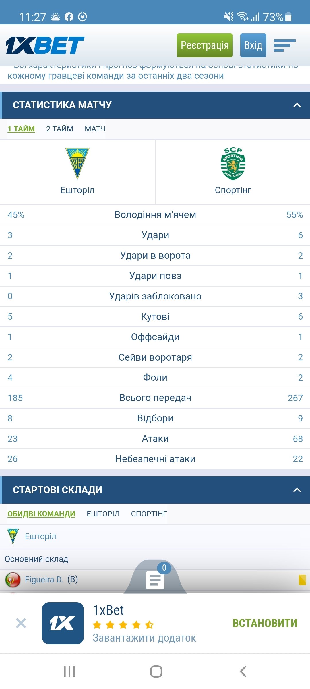 Добрый день, помогите разобраться: Поставил на матч Эшторил - Спортинг Статистика по ударам второй команды больше 5.5 в 1 тайме. Везде статистика 3-6, а пари-матч рассчитал как 3-5, и не показуют ссылку источника.