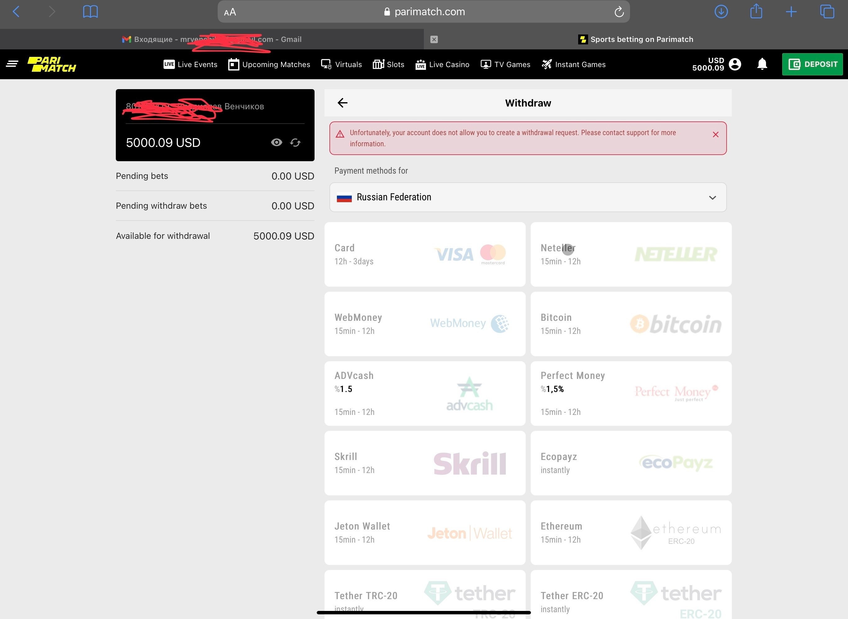 Ваша жалоба - на офшорную БК Пари-Матч. Ее деятельность на территории РФ незаконна. Арбитраж Legalbet помогает решать споры только с легальными букмекерами.