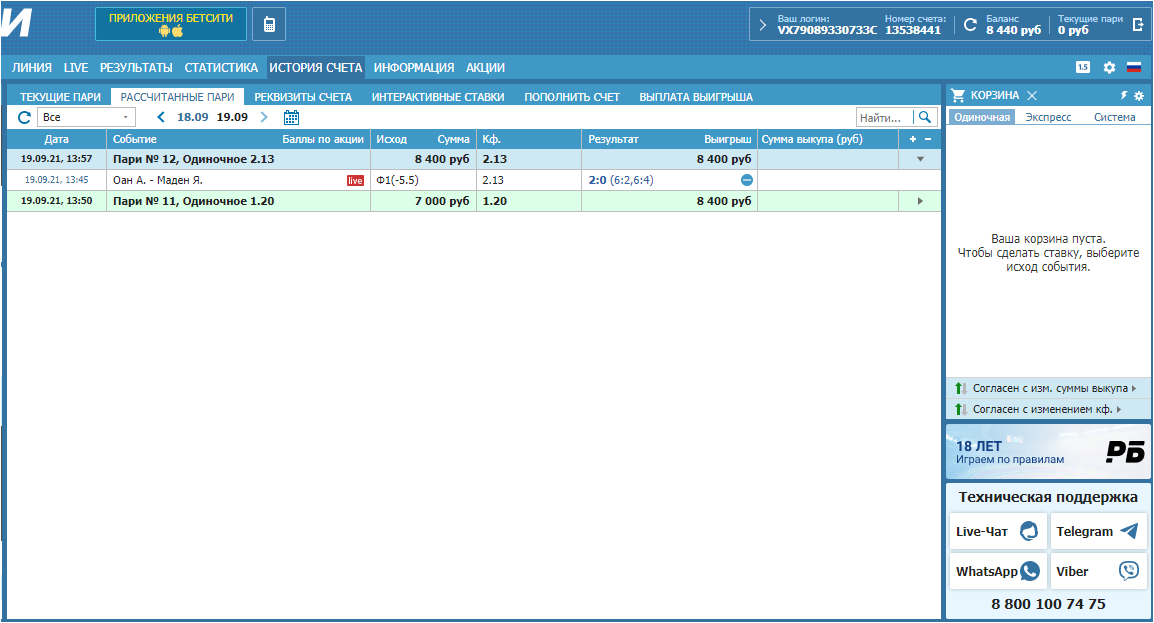 вышел в плюс. поставил деньги на вывод. долго висела заявка. потом отменили и перерасчитали последнюю ставку с кэфом 1. специально веду статистику. считаю очень странным то что сначала рассчитали все правильно, а после того как поставил на вывод. решили оставить деньги себе.