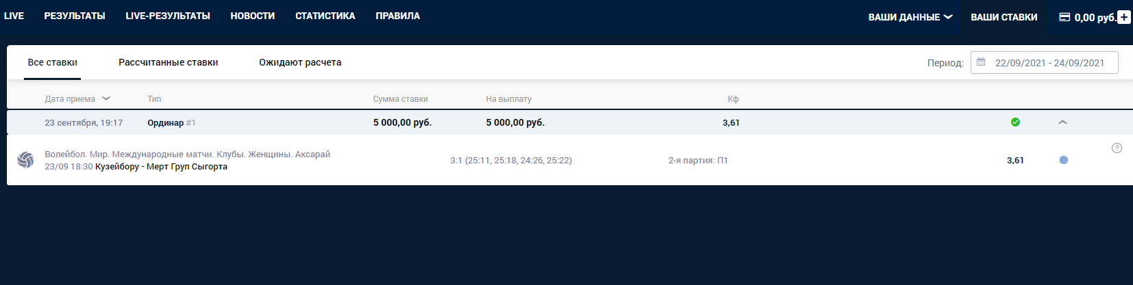 Решил Зарегестрироваться в БК Зенит и работать с этой бк. Поставил первую ставку на победу в волейболе во второй партии. По истечению второй партии, команда на которую я ставил выйграла, но БК Зенит решили вернуть мне эту ставку. Неприятное начало работы с БК Зенит. КФ был 3,61 , сумма ставки 5000р. Крайне разочарован от этой ситуации