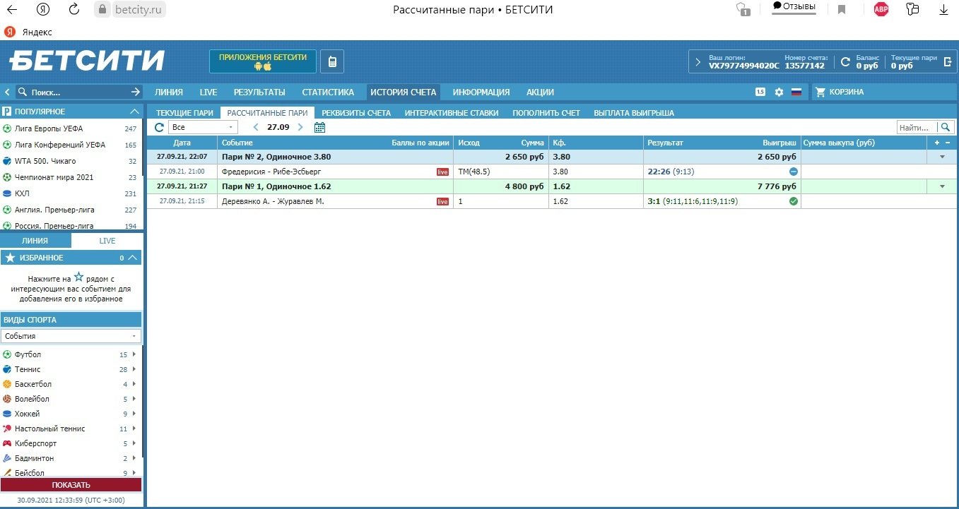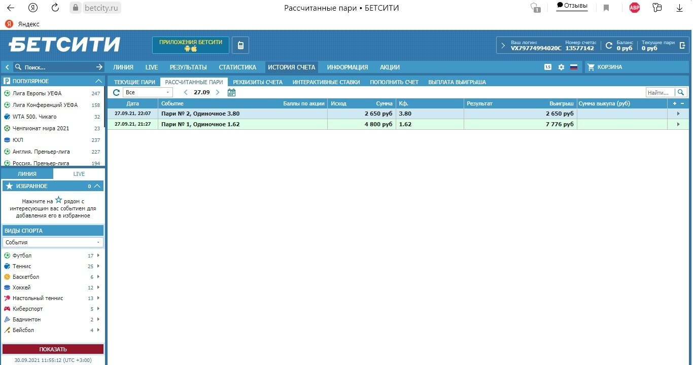 с моего депозита контора забрала деньги. у меня 2 ставки, которые я выиграл: 2650х3.80 = 10070 и 4800х1.62 = 7776, сумма общего выигрыша составила 17846. Первая ставка аннулирована и деньги списаны по непонятным причинам, даже если так то 2650 + 7776 = 10426р. Но мой депозит отражался как 8076, вывести я смог только 8076. Направил на почту букмекера обращение мне оставшуюся сумму 9770 р.