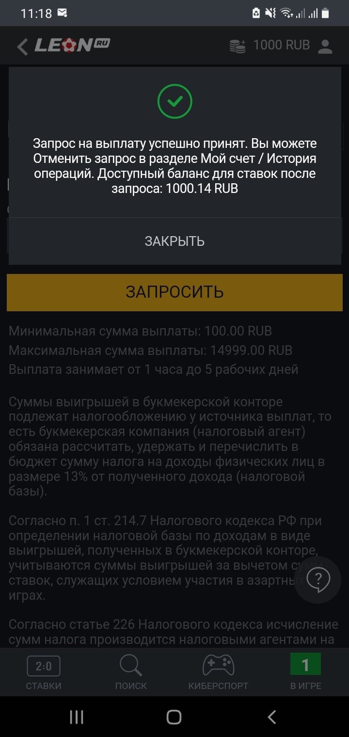 Играл на леоне, все нормально было, выводил деньги, все хорошо было. А сейчас пытаюсь вывести со счета и не получается, помогите. Ставлю на выплату и не показывается даже в выплате сумма, сколько выводил столько и остается на счете. Как вывести то?