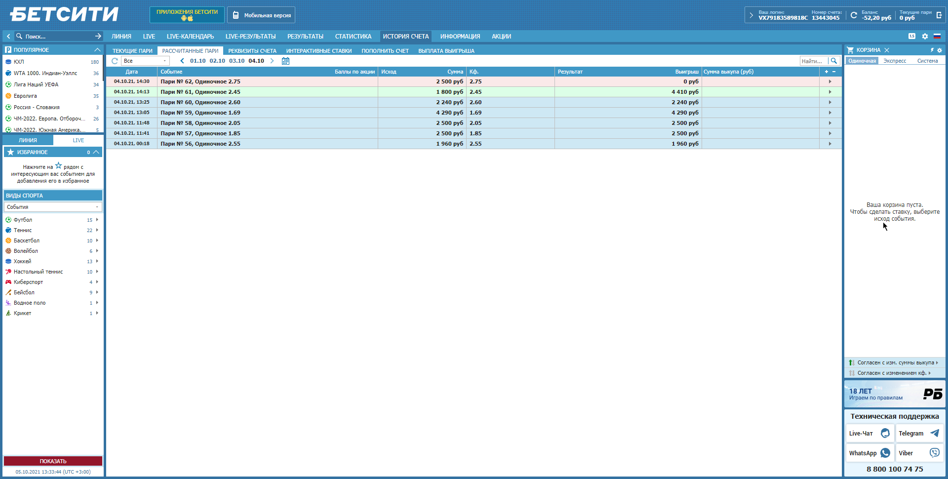 Для корректировки: на счету БК было не 10000 рублей, а 20000+, некоторый баланс я решил там все же оставить для дальнейших ставок.