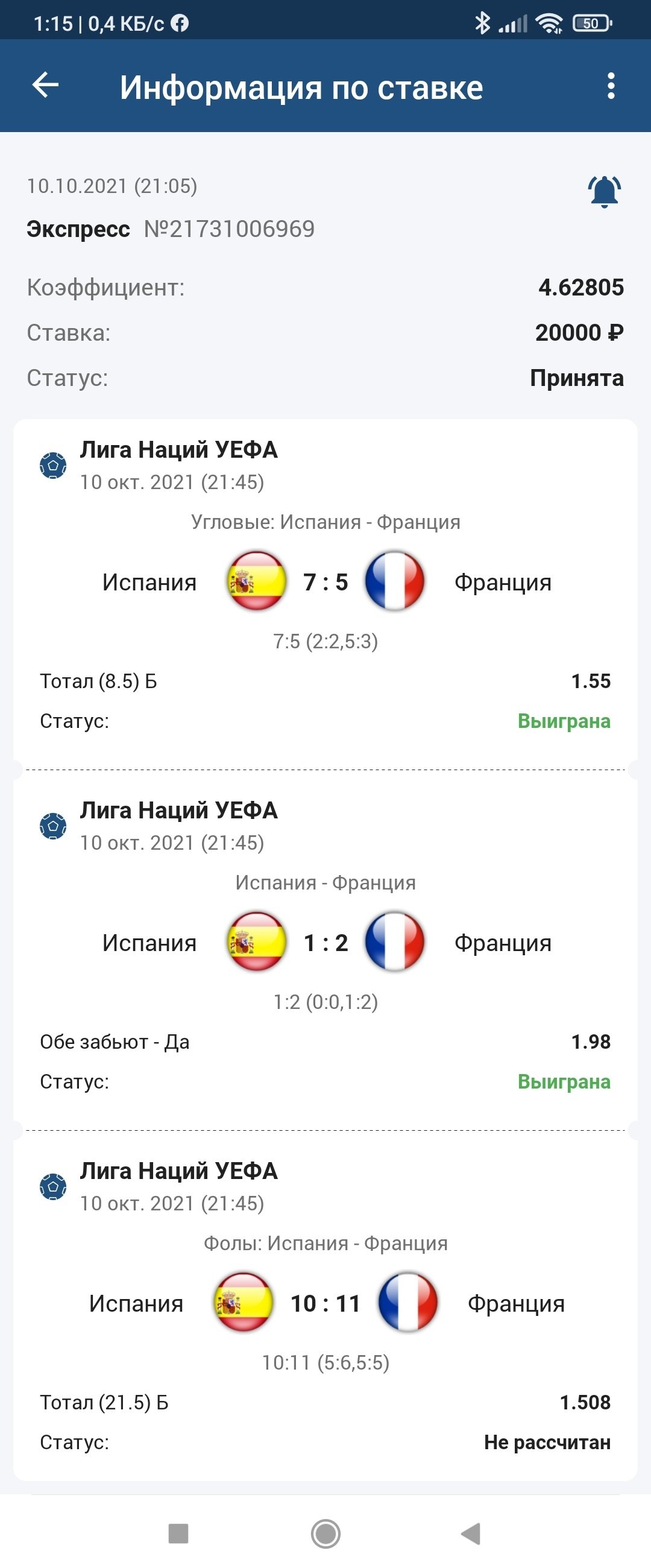 Уже два часа висит нерасчитанной ставка 21731006969. Фолы в матче 21,5б висит нерасчитанной. При этом фолов в матче было 25. Скриншоты прилагаю