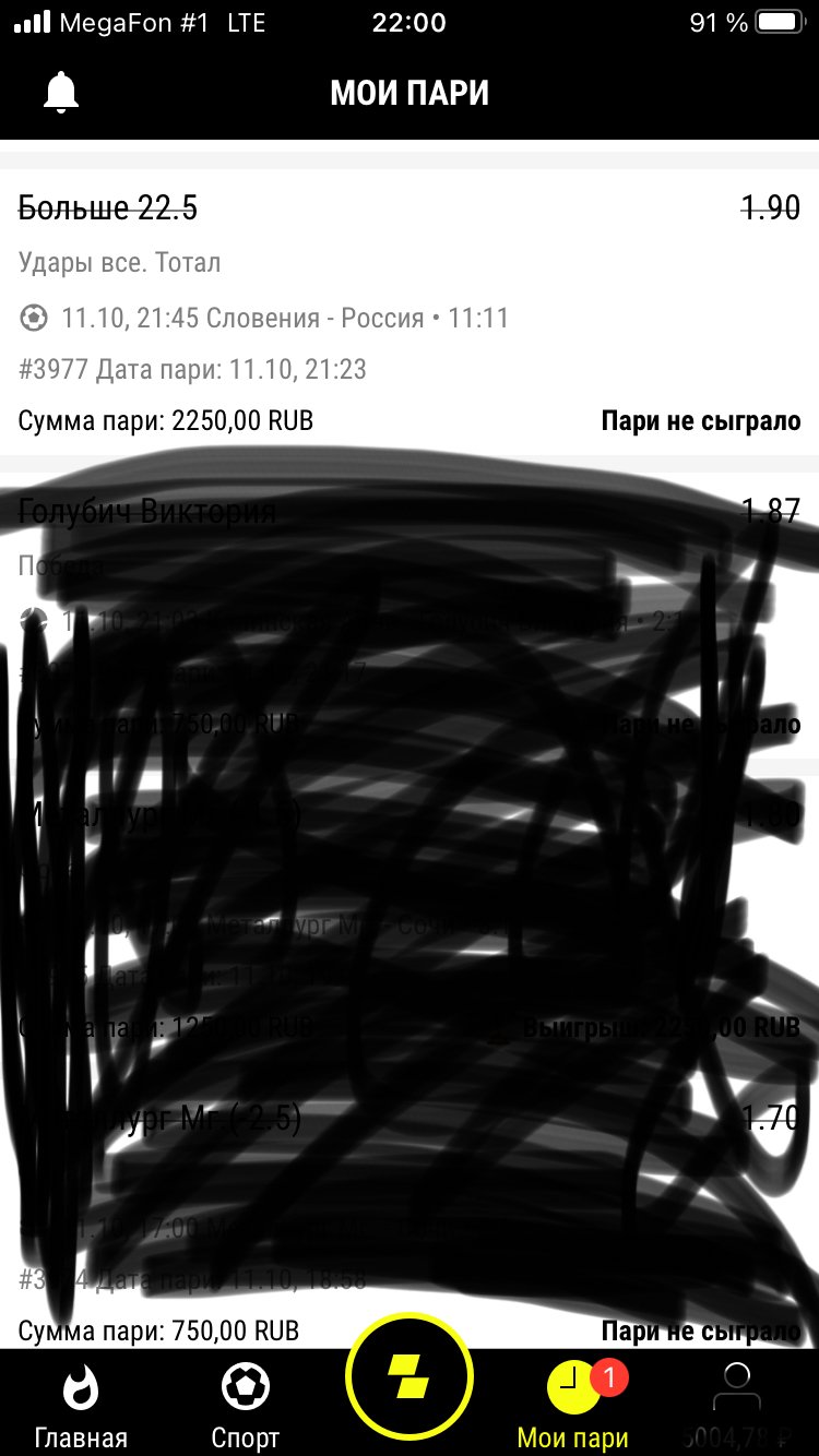 Ставка была на ТБ 22.5 ударов в матче Словения-Россия . Согласно правилам БК Париматч одним из источников для определения статистических показателей является сайт . Счет ударов в матче по данным 13-11, итого 24. БК Париматч рассчитал ставку с результатом 11-11, в службе поддержки сказали что сослались на внутренний источник. Опять же возвращаясь к правилам БК это возможно в случае отсутствия информации в источниках, указанных БК (а информация есть на ) или при очевидных ошибках в протоколах, ошибок я не вижу. Скриншот статистики на прикрепил (15-11 по ударам). На Чемпионат.ру удары 15-11, на flashcore 13-11. Можете проверить, более 3 скриншотов прикрепить не дают. Все очевидно.