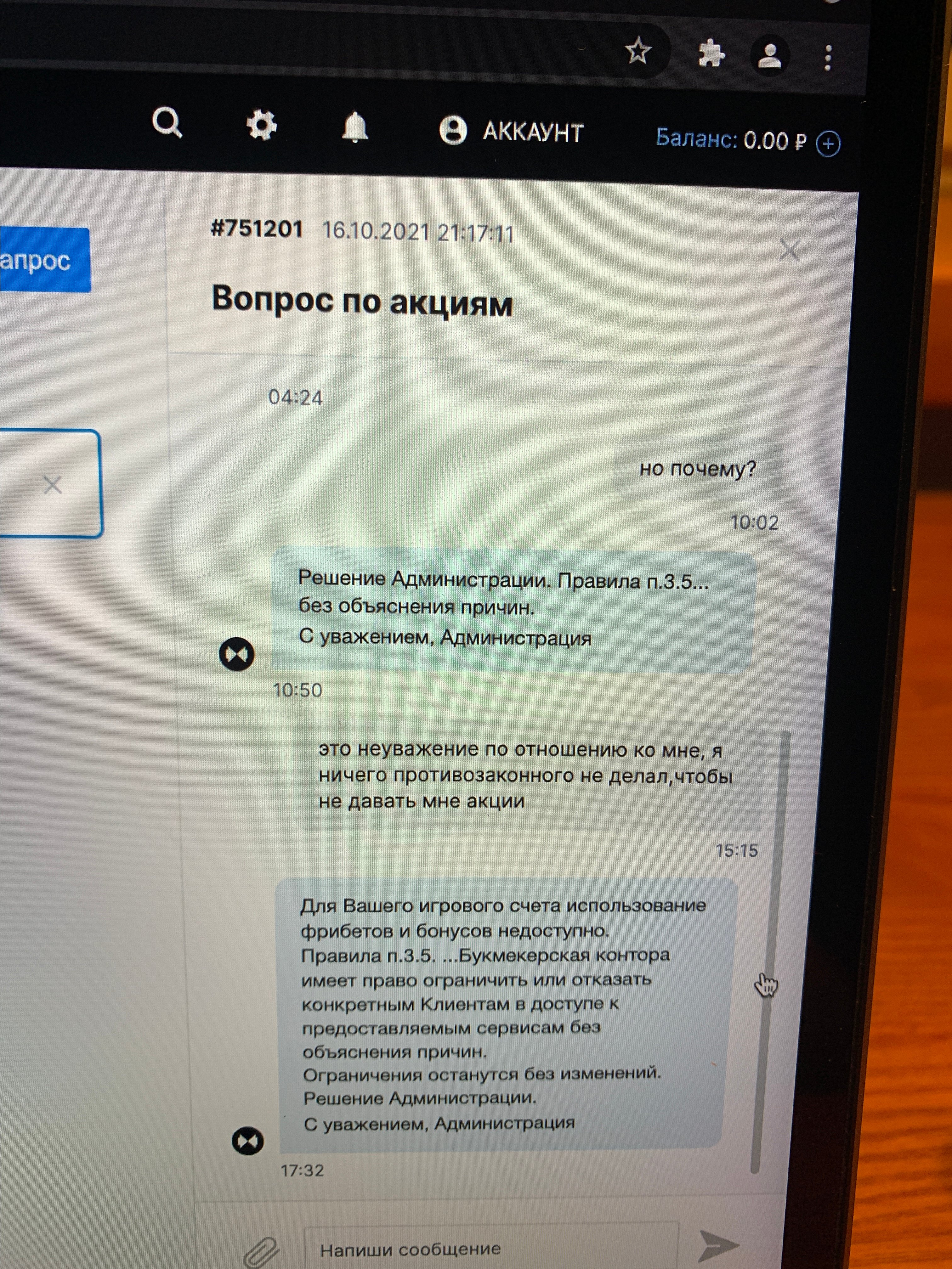 После предоставления букмекером фактических данных, статус по жалобе изменен.
