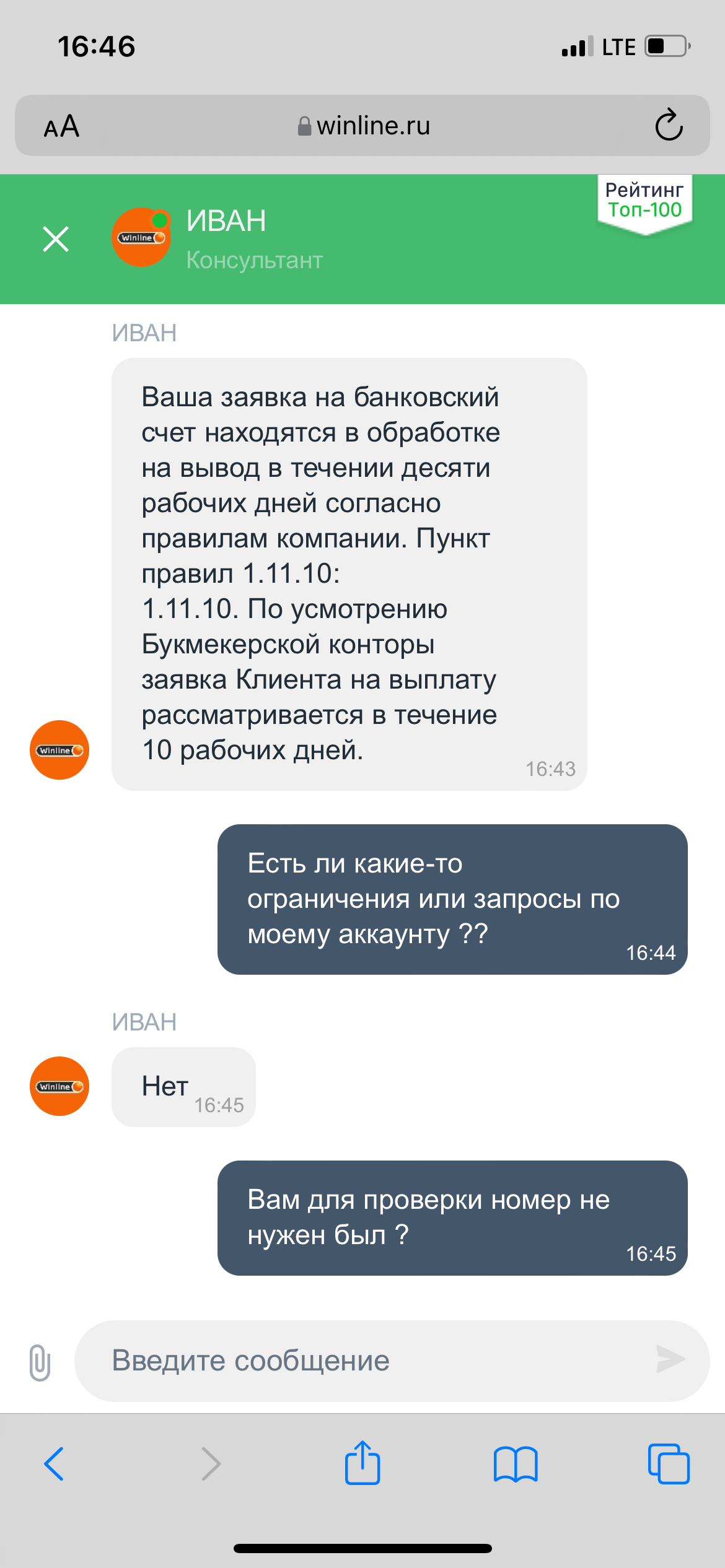 Все было хорошо, но что-то пошло не так. 🤷🏻♂️ Добрый день. Выйграл по ставке с кэф , 114000 тр, ранее на определенном этапе времени были такие же ставки на ТМ, они были успешны, порядка 7-8 штук. Матч проходил в Индонезии, повлиять на его исход я никак не мог в том числе узнать его итог. При попытке вывода мне пришло уведомление о том, что мой аккаунт заморожен и мне необходима доп верификация на которую я сразу же согласился. Сначала был звонок тех поддержки по аудио связи, после нескольких уточнений оператор позвонил на видеовызов. По его требованию я предоставил паспорт в развороте и именную карту с которой производились операции. После чего услышал что все хорошо и в течении 15 минут все станет доступно. Дополнительно в приложении я добавил по запросу фото двух именных карт и продублировал их на почту. Однако, вывести денежные средства на карту так и не стало возможным. Единственный способ вывода по реквизитам счета плательщика, к моему большому сожалению операция вывода уже висит второй день и повторные попытки не привели меня к успеху. Будьте любезны помочь мне в этом вопросе. Казалось бы, что могло пойти не так. Спасибо. 11383841 аккаунт, 743215845 номер пари.