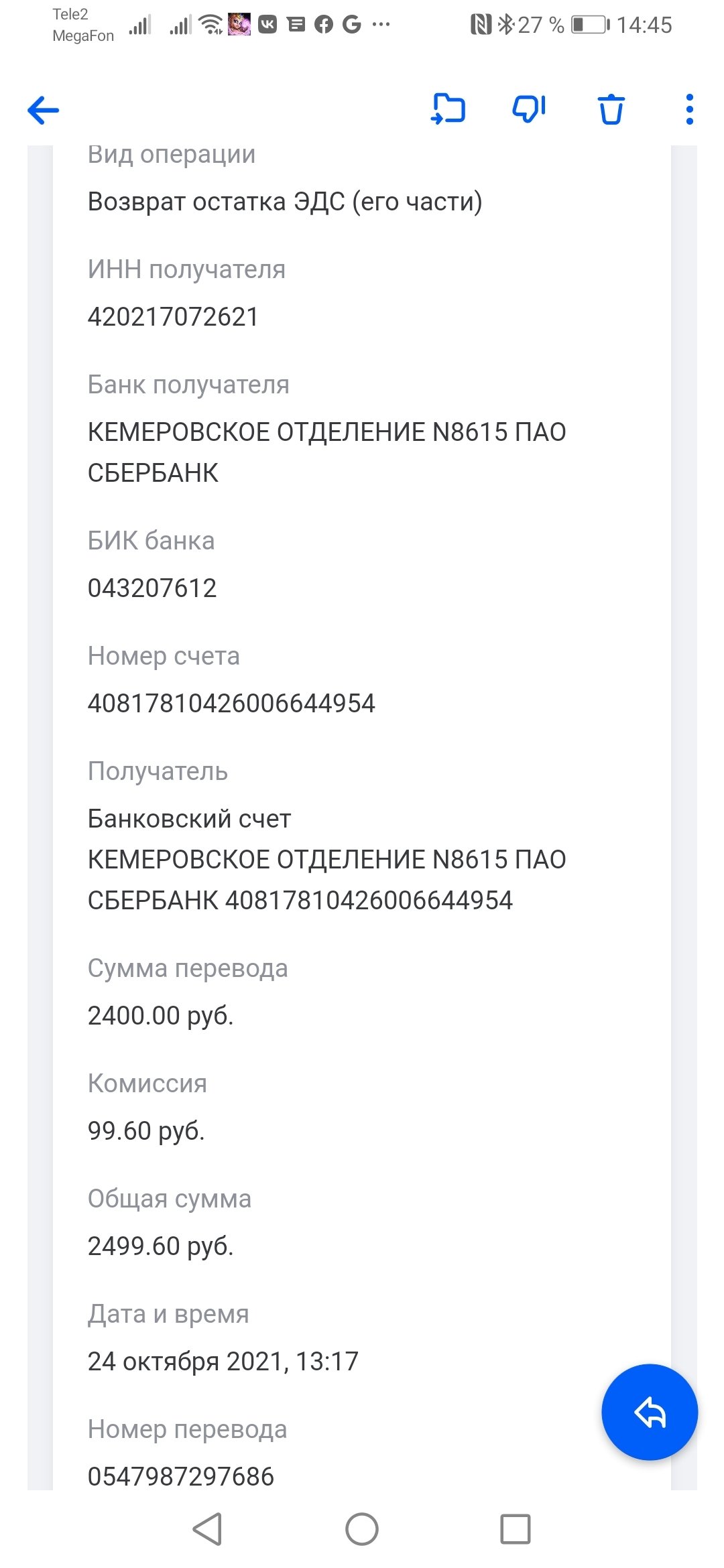 Вывел деньги 2500 руб. + комиссия 2400. 24 октября(воскресенье) высветилось что в выходные дни не работает выплата, только в рабочие дни. Сегодня 25(понедельник) нету до сих пор