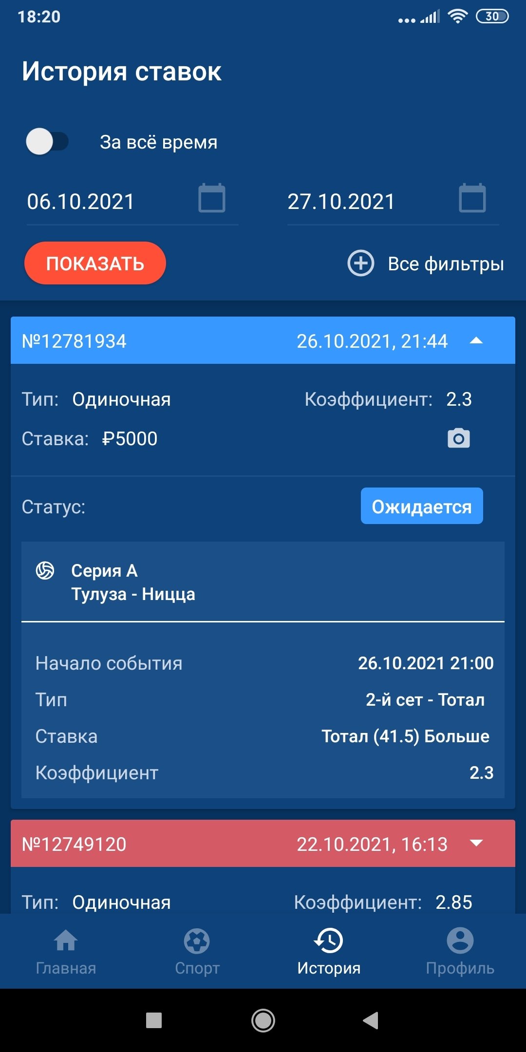 Здравствуйте, ставил на матч чемпионата Франции по волейболу, ставка была на ТБ в середине сета . Ставку не рассчитывают 2 день пишут идут какие-то то разбираьельста . Прошу решить мою проблемму