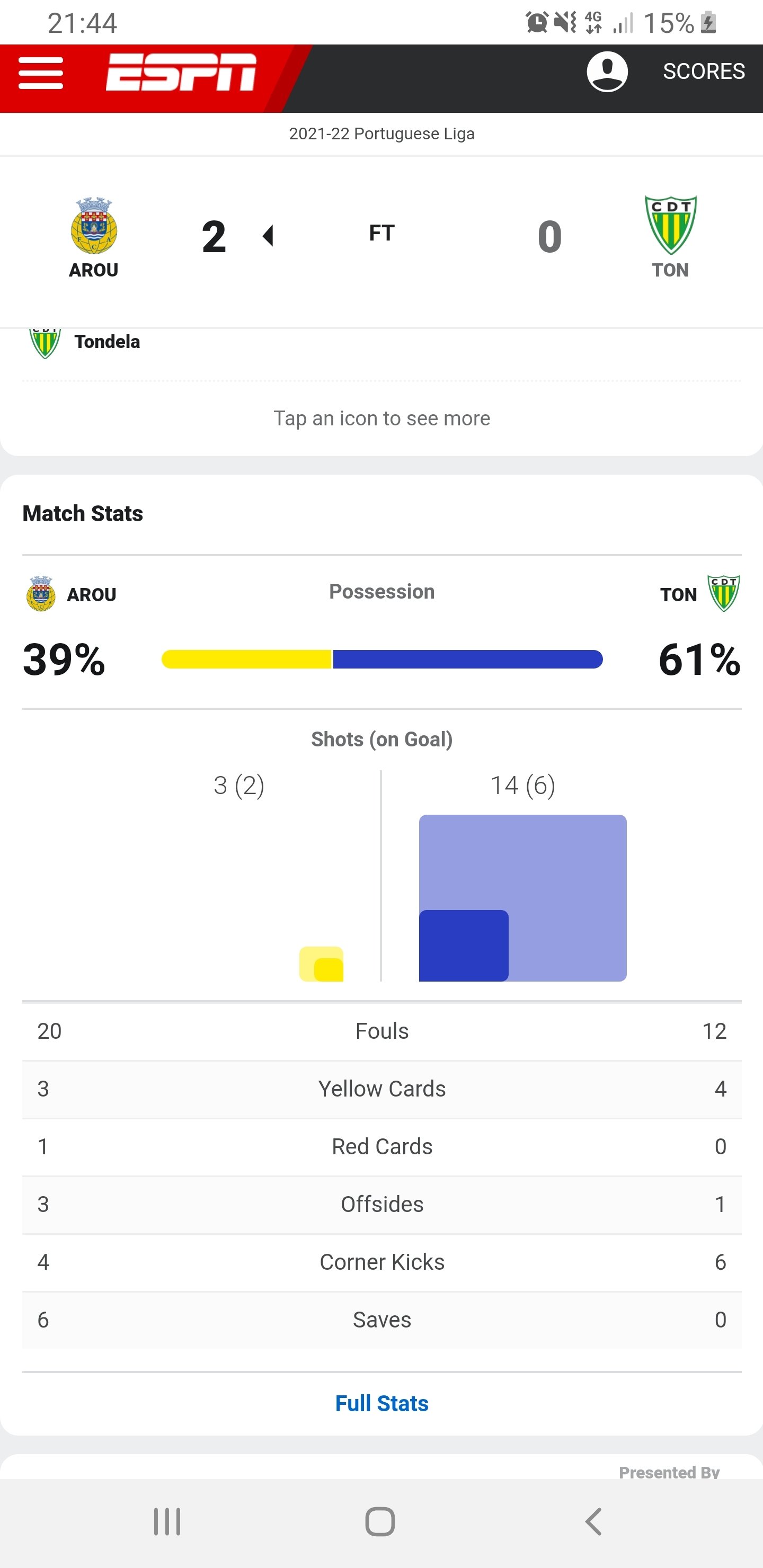 Добрый день! Вчера в результате матча португальской лиги 1 между командами арока: тонделла, вы дали не верный результат по количеству фолов!!! Счёт матча 20:13!! Это подтверждает и официальный сайт португальской футбольной лиги!!! Прошу вас, проверить результаты и внести корректировку!!!