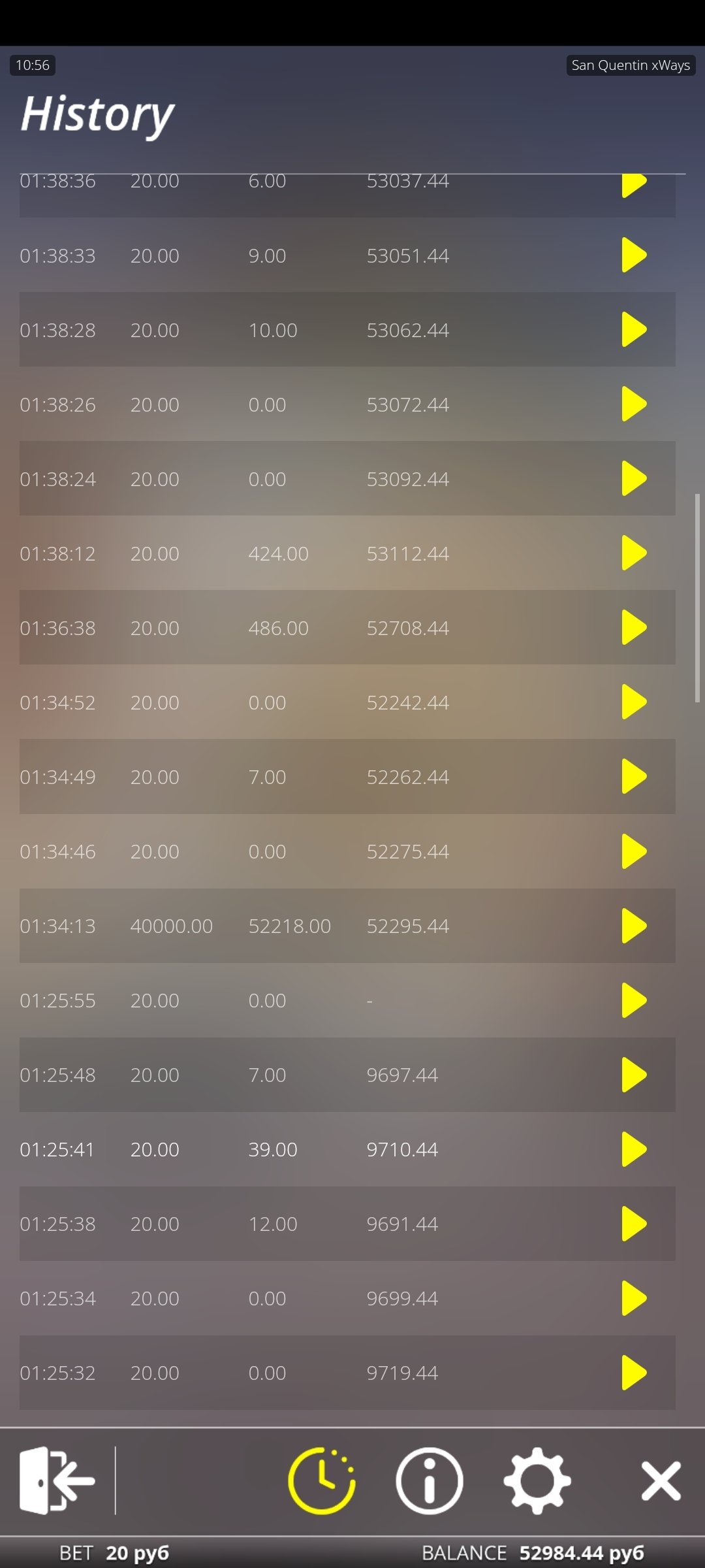 Вот история последней игры там где была куплена бонусная игра в размере 40.000 тысяч рублей