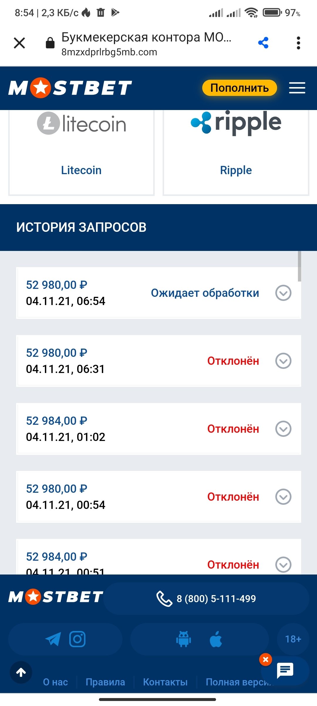 Как выяснилось , отказ идет от службы безопасности мостбет... всё так же без причины