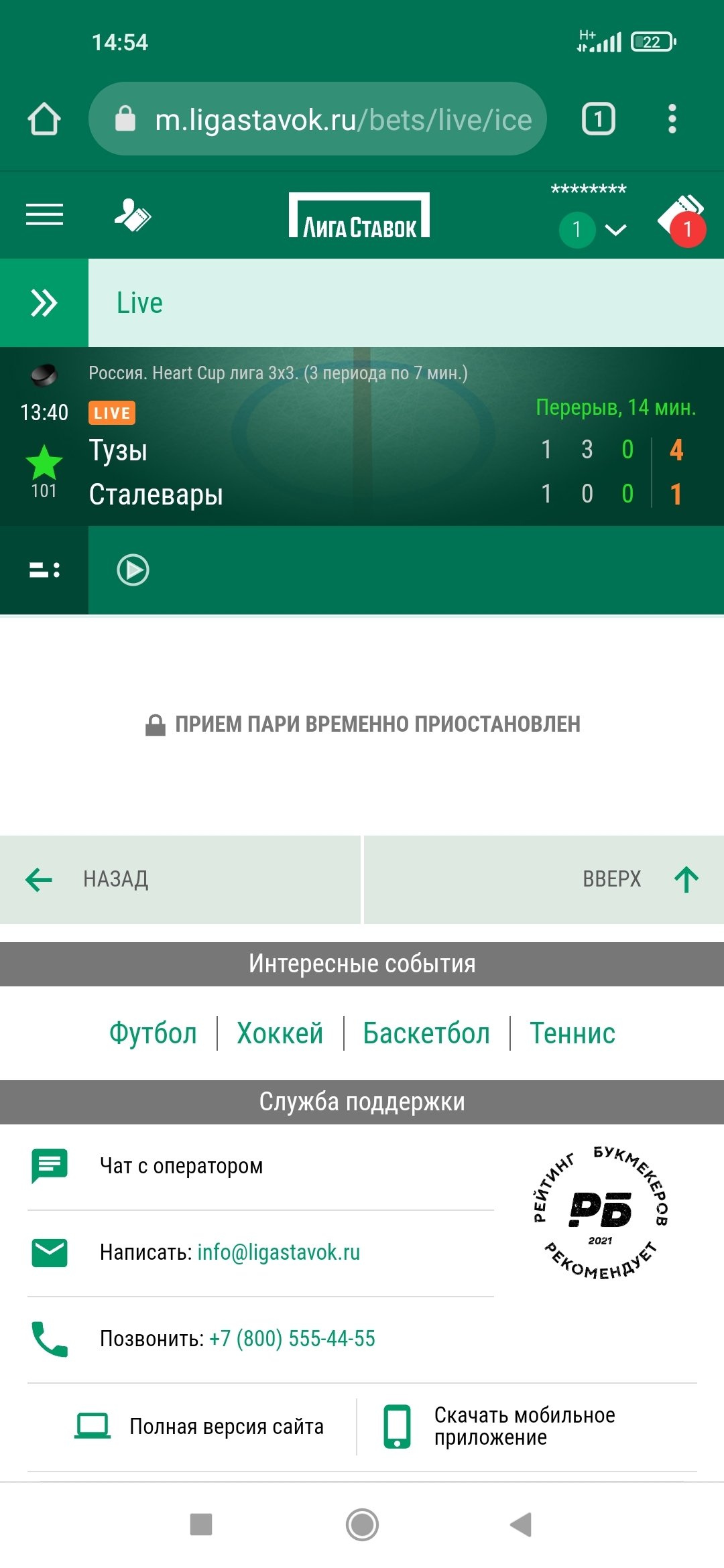 Я успел сделать скрины экранов, где даже на пари видно, что счёт на момент 4:1 играл для моего пари.Расчет пари провели по счету 5:3.В итоге я потерял 121 800 рублей. Обратился в службу поддержки, но пока ответа нет. Думаю в нашей стране, что то выиграть невозможно, ужас, просто, что творят эти ООО " ПМБК".