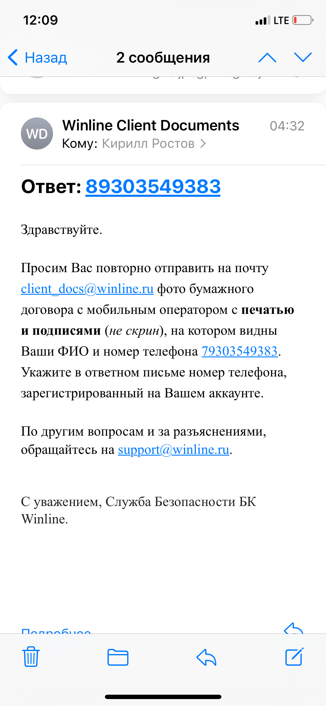 Требуют договор или выписку от сотового оператора (Мегафон) c паспортными данными и печатью. Так как договор от 2015 года, то он не сохранился. При обращении в Мегафон оригинал договора выдать не смогли. Но выдали документы. Ответ на заявление о предоставлении договора, который является официальным документом и имеет юридическую силу и информацию о договоре . Печати на них нет, так как печать Мегафон только ставит на оригинальный договор и больше нигде. Все это отправлено букмекеру. То есть получить документ с печатью и паспортными данными невозможно. На все разумные доводы отписка, цитирую По всем вопросам касательно получения документа обратитесь в салон связи, пожалуйста. Требования к фото мы Вам предоставили в сообщении выше, со своей стороны мы к сожалению не можем помочь Вам в получении данного документа. Поскольку фото документа удостоверяющего принадлежность Вам номера телефона указанного при регистрации на нашем сайте обязательно, проверка не может быть завершена пока Вы его не предоставите. Прошу помощи в разрешении данной ситуации. Ростов Кирилл Михайлович