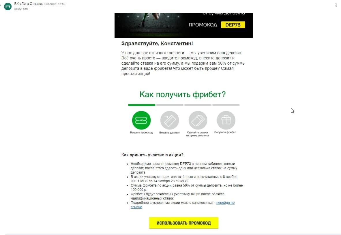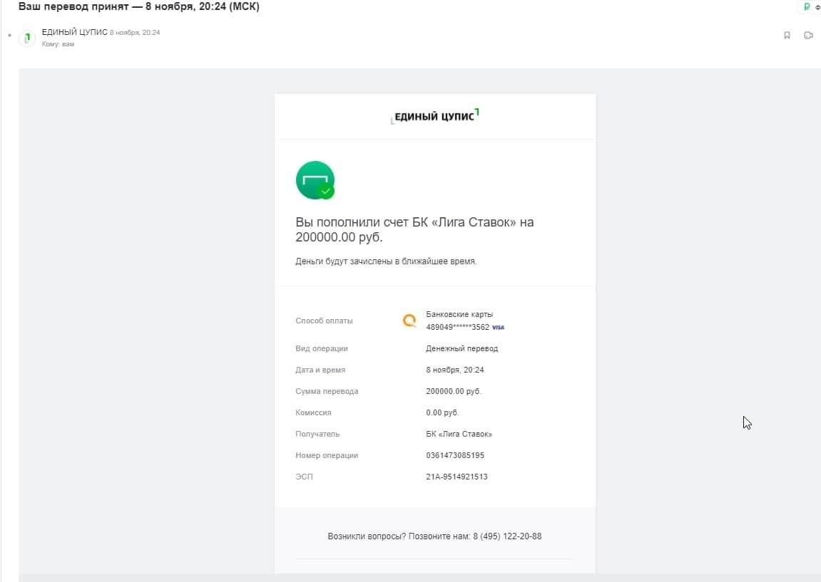 Здравствуйте. 8 ноября я получил на почту от букмекера Лиги ставок рассылку с предложением поучаствовать в акции. Предложение очень щедрое, поэтому я сразу пополнил счет, чтобы в ней поучаствовать. Выполнил все условия по акции, поставил первую ставку на победу России или ничью в футбольном матче Россия - Кипр. Моя ставка выиграла и мне начислили фрибет. Этот фрибет я проставил на футбольный матч Италия - Швейцария, на исход ничья. Фрибет мой тоже выиграл, на балансе сумма стала 270000 р, после чего я создал заявки на вывод средств. Через некоторое время я захожу на сайт букмекера, пытаюсь зайти в свой аккаунт а мне пишут, что аккаунт заблокирован и нужно сходить в ппс для написания зявления. Хорошо, я сходил, написал, сегодня мне его разблокировали и что я вижу? А ничего, в истории ставок за 3 месяца нет не одной ставки. Хотя и до этой ситуации я их заключал на сайте этого букмекера. Далее, в истории выводов, все заявки отклонены по причине "недостаточно средств". После обращения в службу поддержки мне аккаунт опять заблокировали. (да-да, вот так вот они с клиентами обращаются, просят опять в ппс сходить. И сколько это будет продолжаться? Каждый день туда ходить то?) Это какой-то обман. Заманивают акцией и забирают деньги. Позор, а не контора, а ее еще и рекламируют по федеральным каналам. Никому не советую пользоваться ей, потеряете деньги, они мошенники.